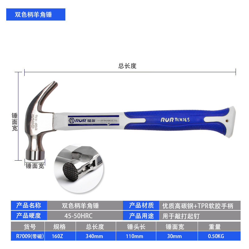• 500g 충격 방지 섬유 핸들 강한 자기 양말 얼굴 클로 해머