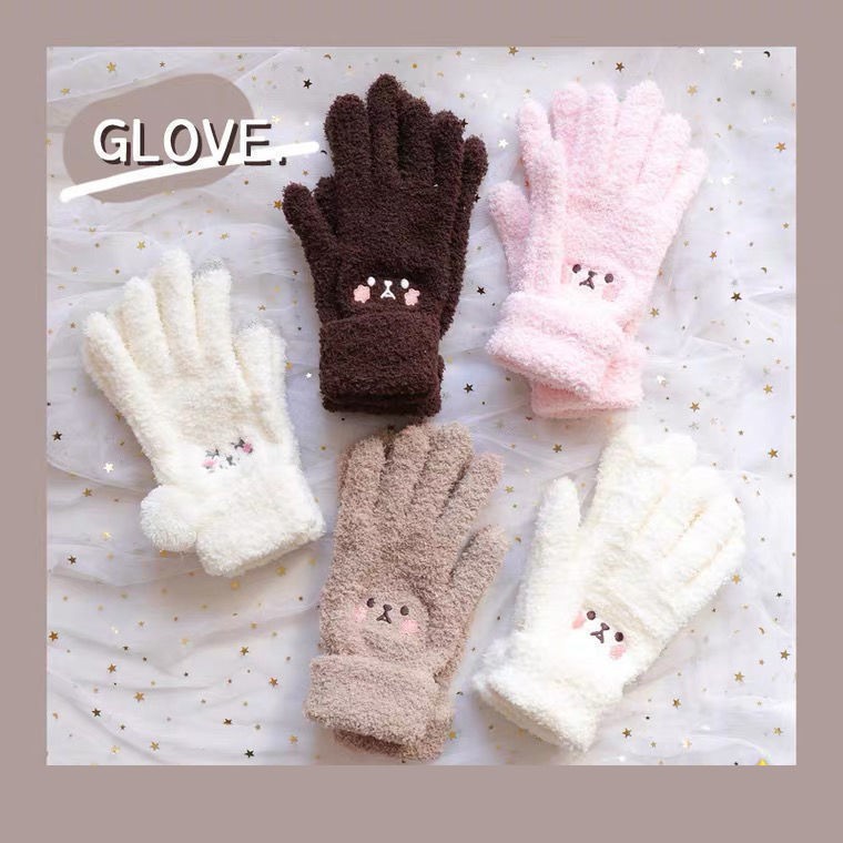 소스 제조 업체 도매 곰 자수 귀여운 만화 학생 두꺼운 따뜻한 숙녀 겨울 니트 봉제 장갑스토어 가기