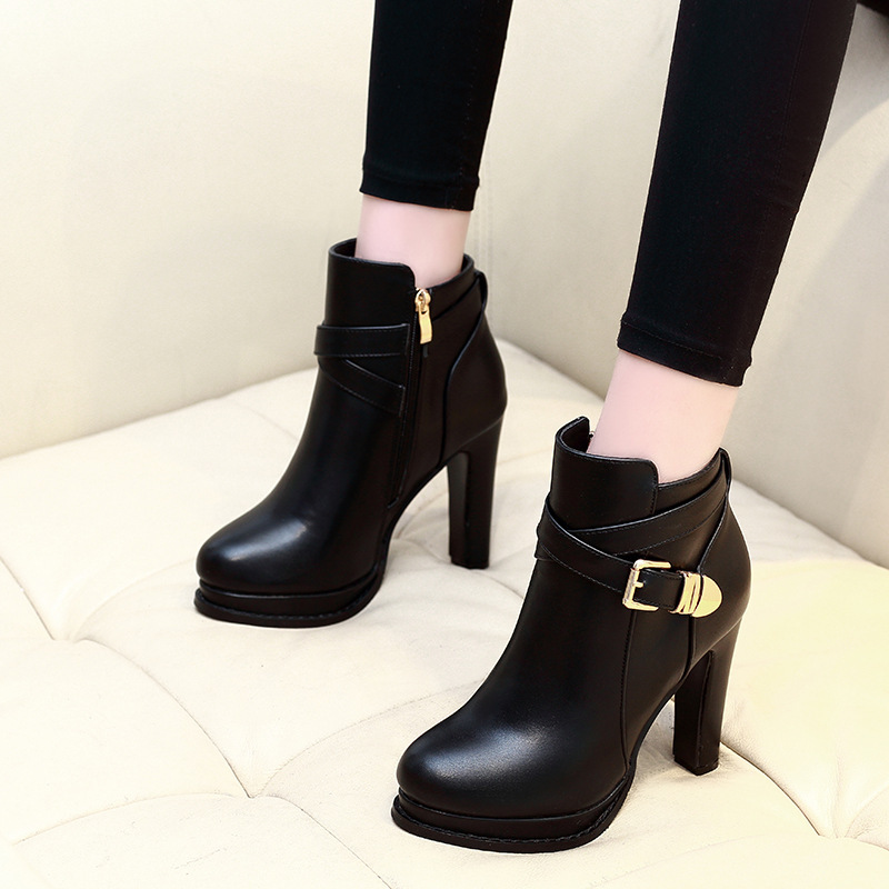192-1 방수 플랫폼 라운드 헤드 벨트 버클 짧은 부츠 두꺼운 힐 하이힐 여성 가을과 겨울 2021 New스토어 가기