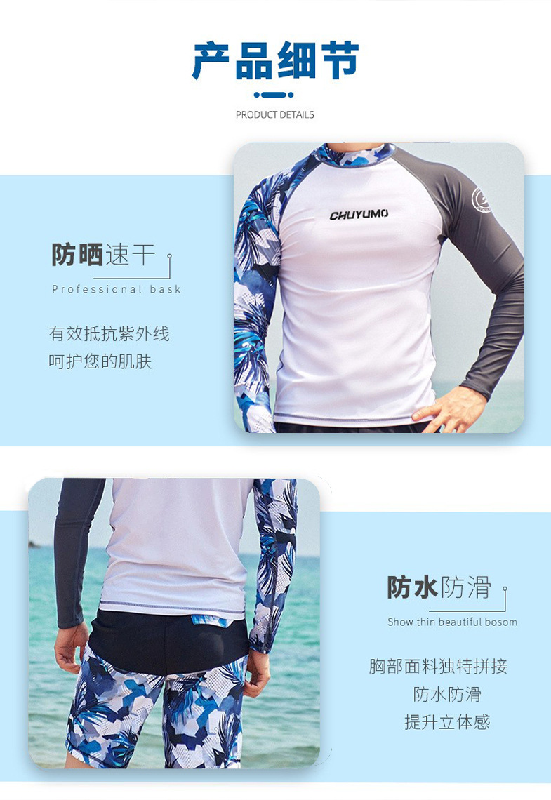 Surfsuit 남자의 긴 소매 수영복 속건 태양 보호 세트 다이빙 세트 스노클링 세트 비치 스포츠웨어 공장 아울렛