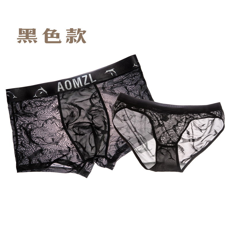 오만한 사랑 아이스 실크 섹시한 커플 자카드 속옷 통기성 여성용 팬티 미드 웨이스트 남성용 복서 속옷