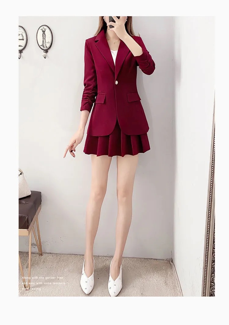 여성용 레드 슈트 정장 2025 가을 겨울 패션 기질 작은 정장 재킷 주름 스커트 투피스 세트