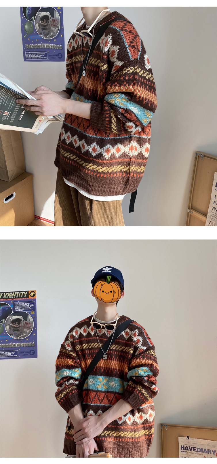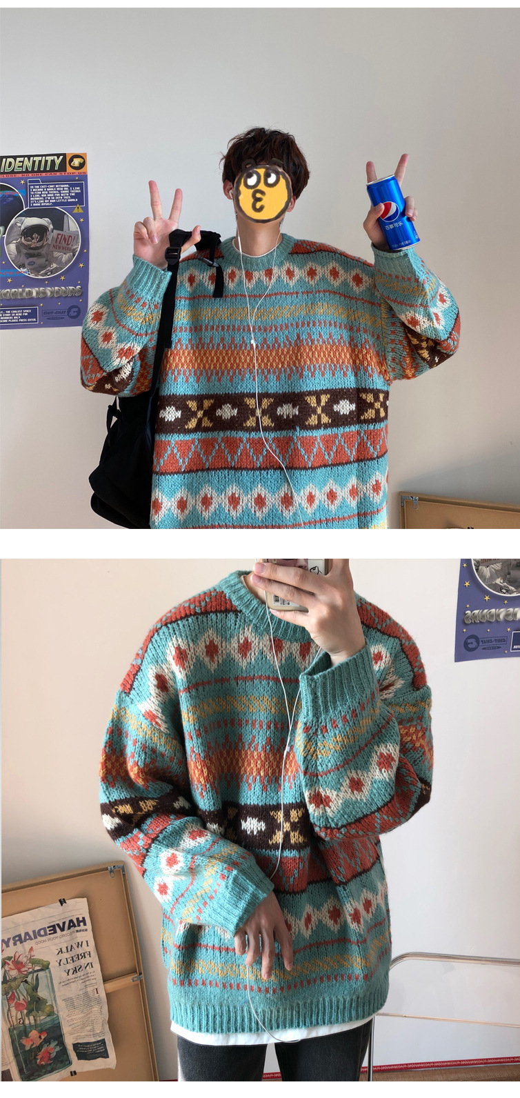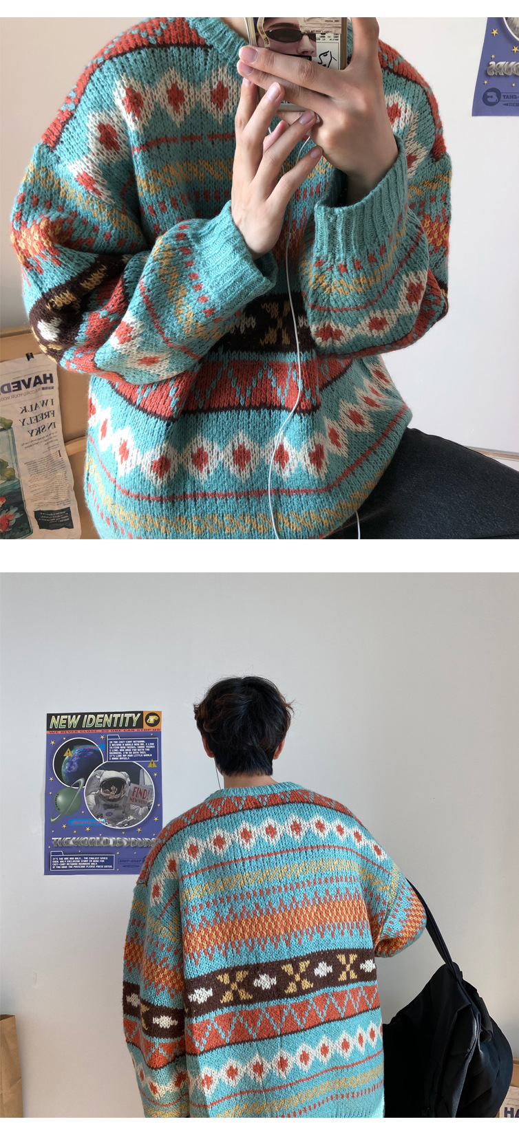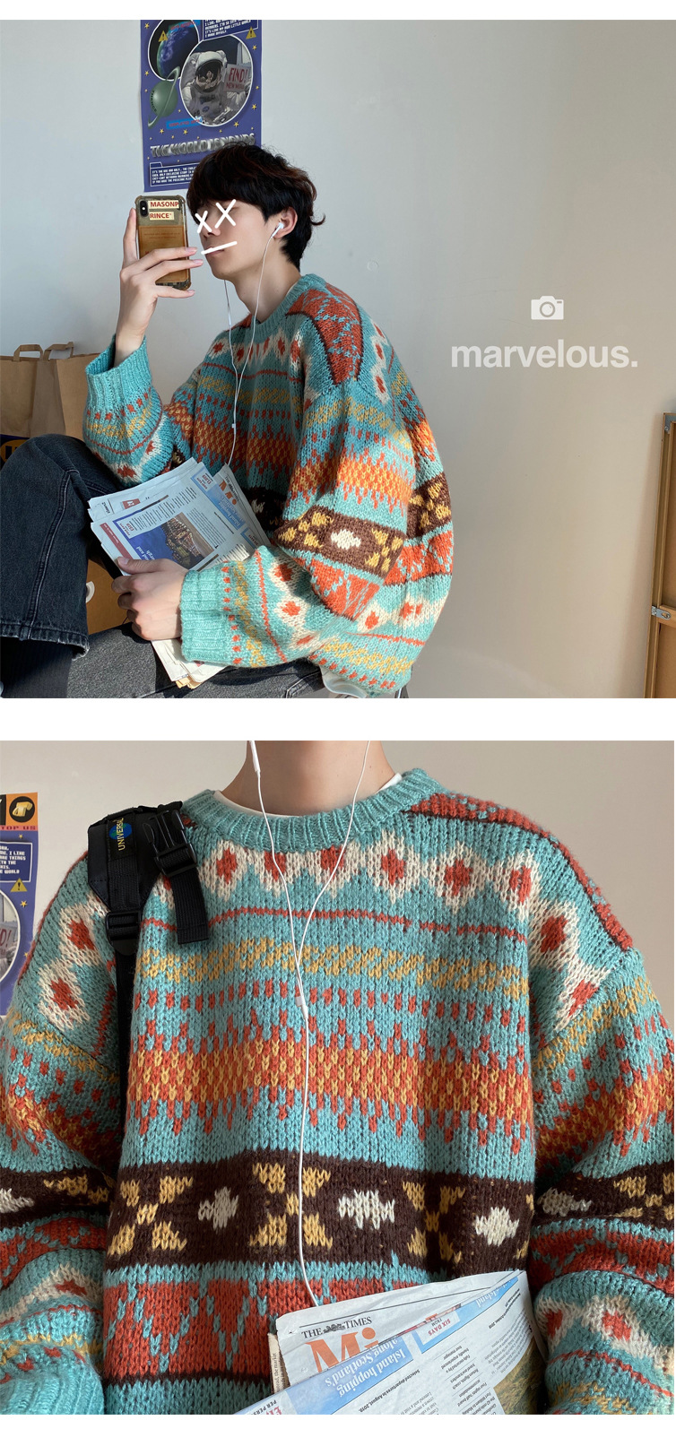 두꺼운 라인 느슨한 스웨터 남자의 겨울 에스닉 스타일 코트 한국 스타일 홍콩 스타일의 내부 따뜻한 두꺼운 니트 스웨터스토어 가기