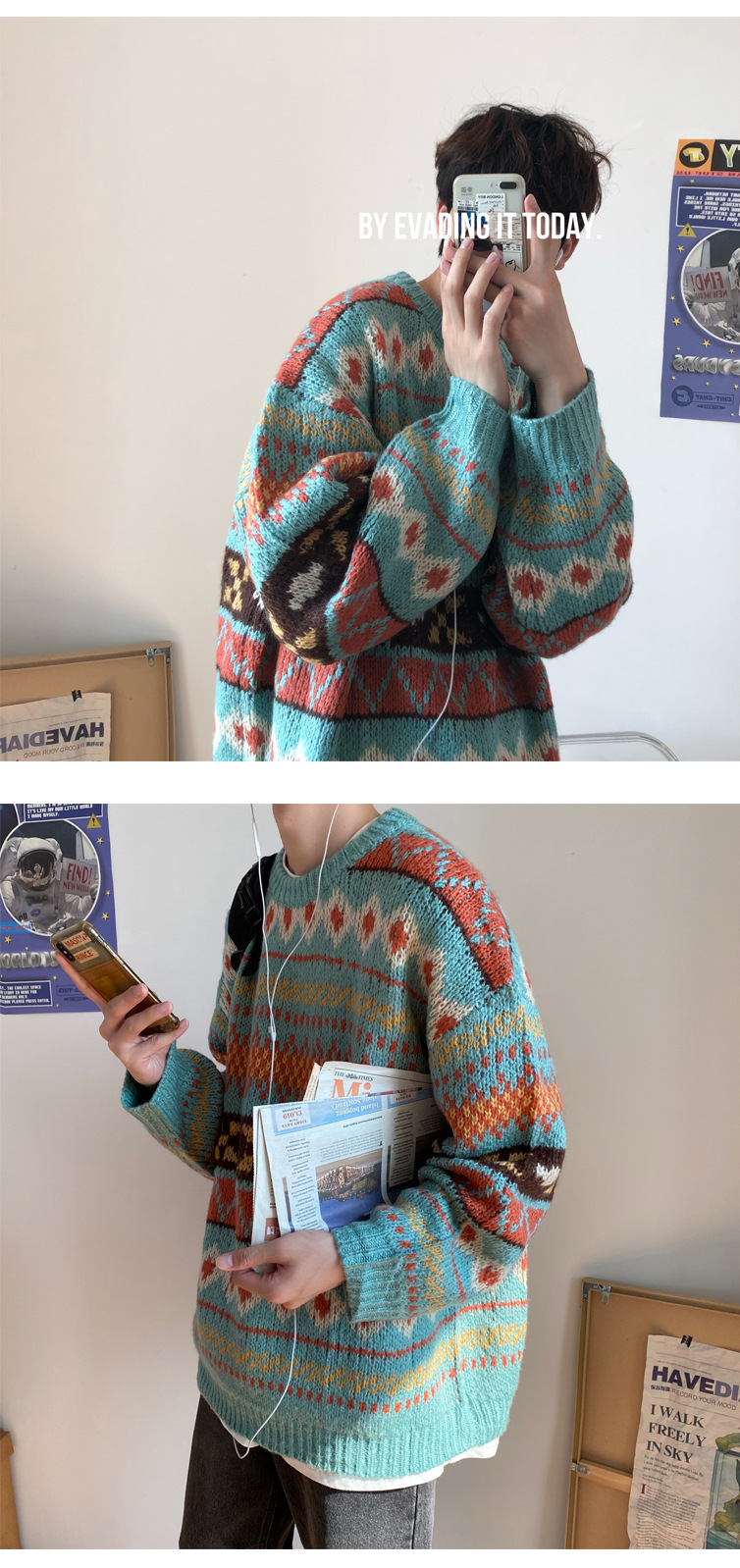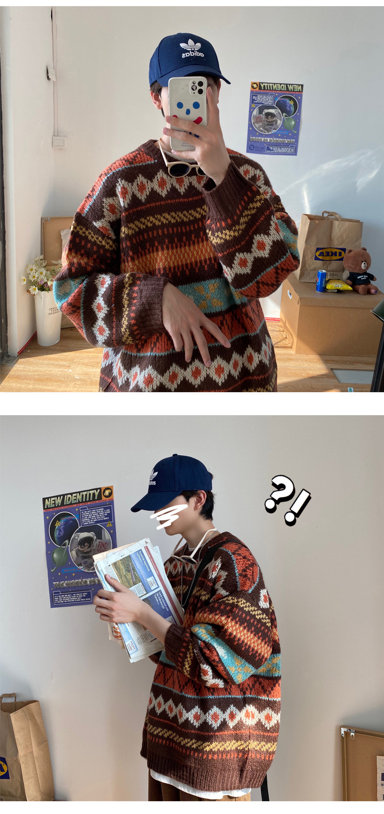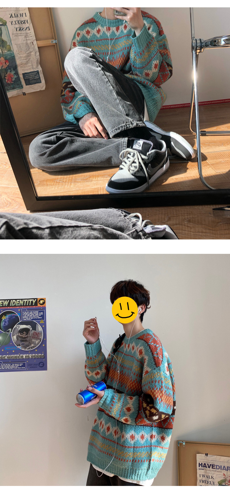 두꺼운 라인 느슨한 스웨터 남자의 겨울 에스닉 스타일 코트 한국 스타일 홍콩 스타일의 내부 따뜻한 두꺼운 니트 스웨터스토어 가기