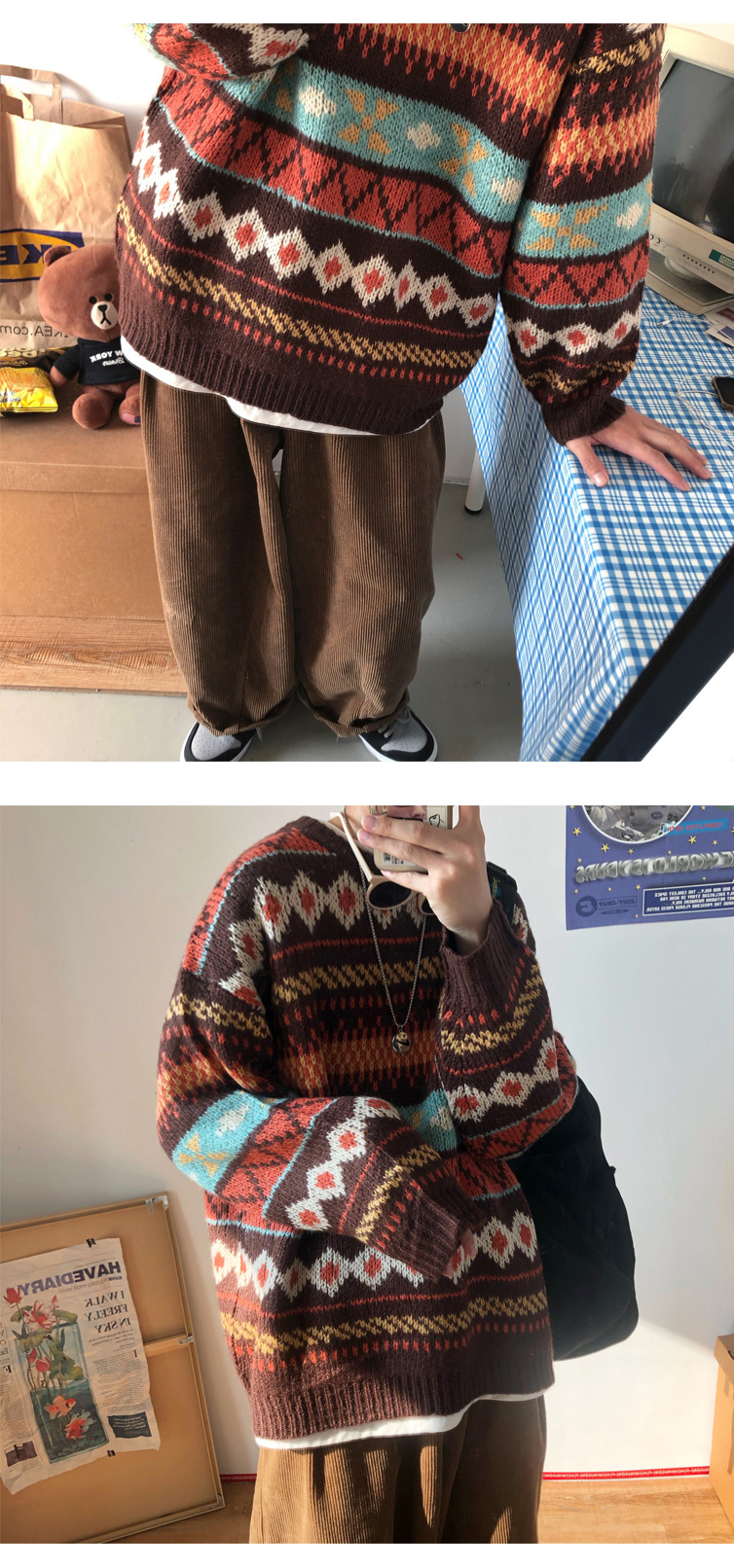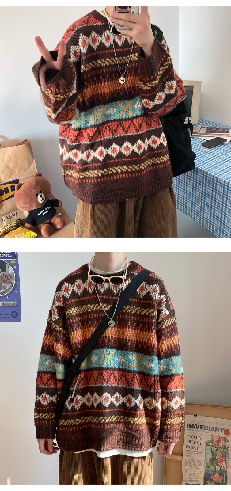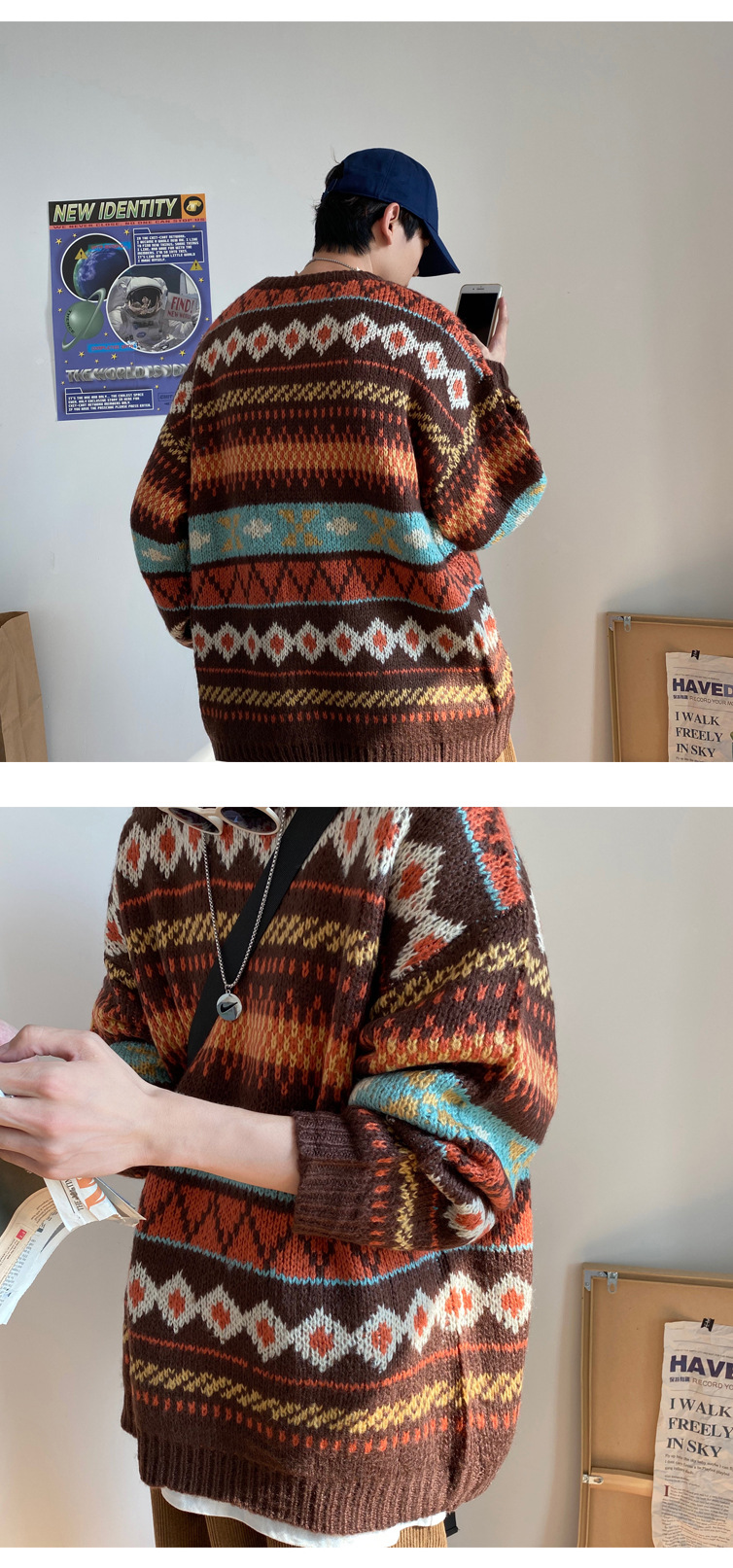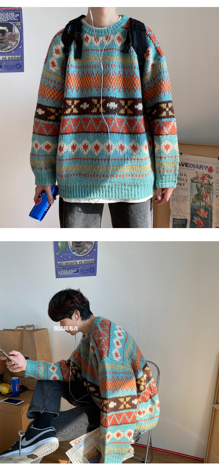 두꺼운 라인 느슨한 스웨터 남자의 겨울 에스닉 스타일 코트 한국 스타일 홍콩 스타일의 내부 따뜻한 두꺼운 니트 스웨터