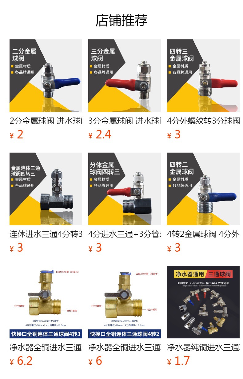 2 점 금속 볼 밸브 입구 볼 밸브 스위치/정수기 밸브 2 점 스위치 정수기 2 점 볼 밸브스토어 가기