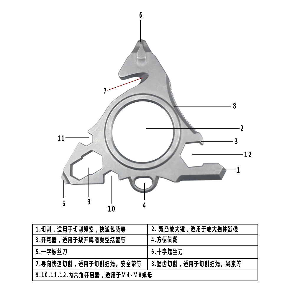 돋보기 야외 생존 도구 캠핑 EDC 휴대용 미니 드라이버가있는 다기능 눈송이 렌치스토어 가기