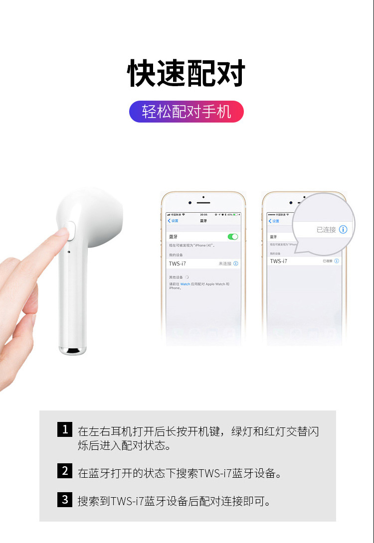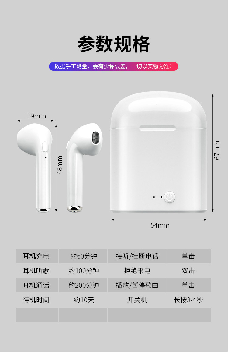 【产品名称】:i7S tws 无线蓝牙耳机