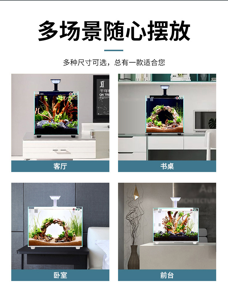 소스 메이커 소형 어항 음소거 물 프리 수족관 울트라 화이트 유리 백 필터 어항 거실 가정용 어항스토어 가기