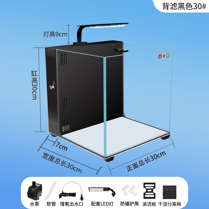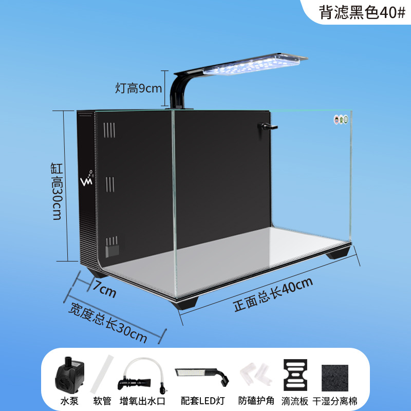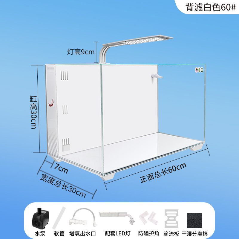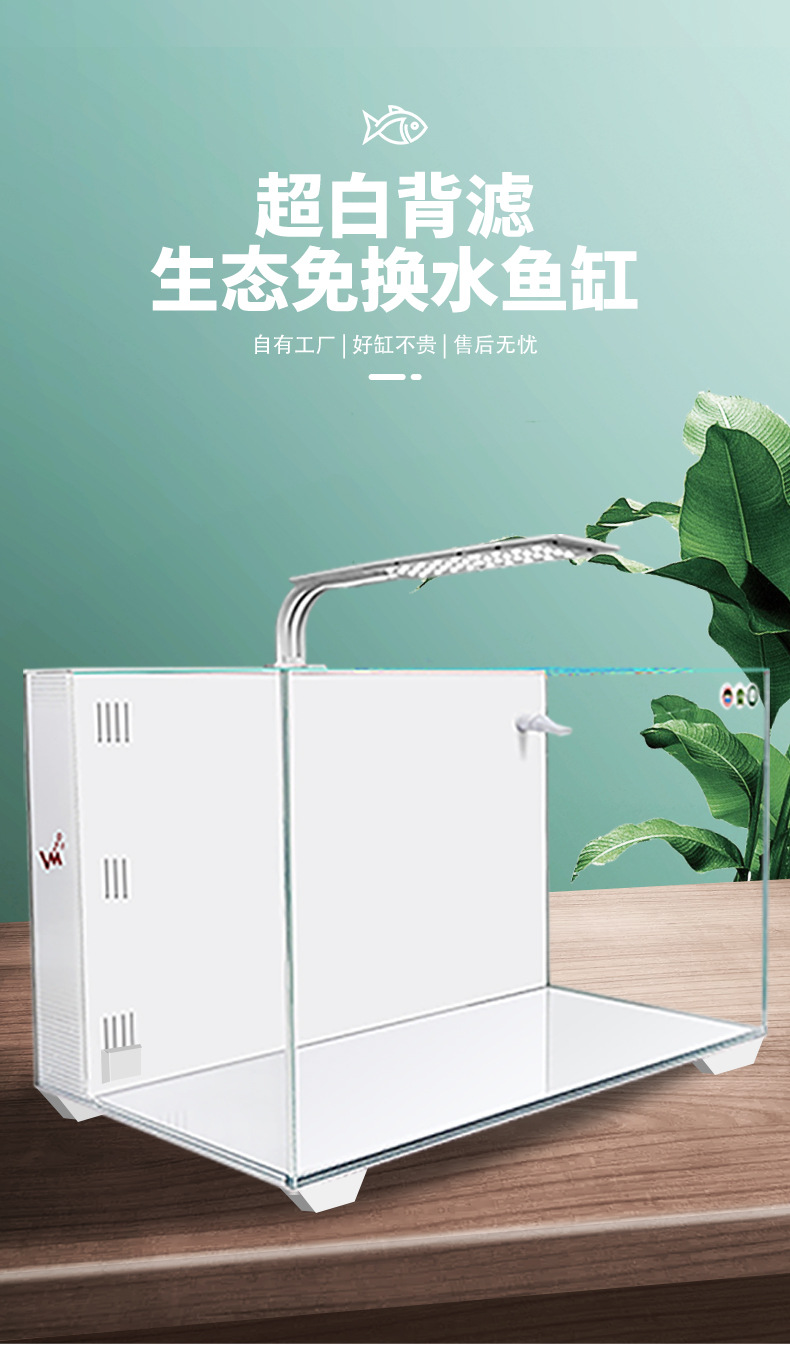 소스 메이커 소형 어항 음소거 물 프리 수족관 울트라 화이트 유리 백 필터 어항 거실 가정용 어항