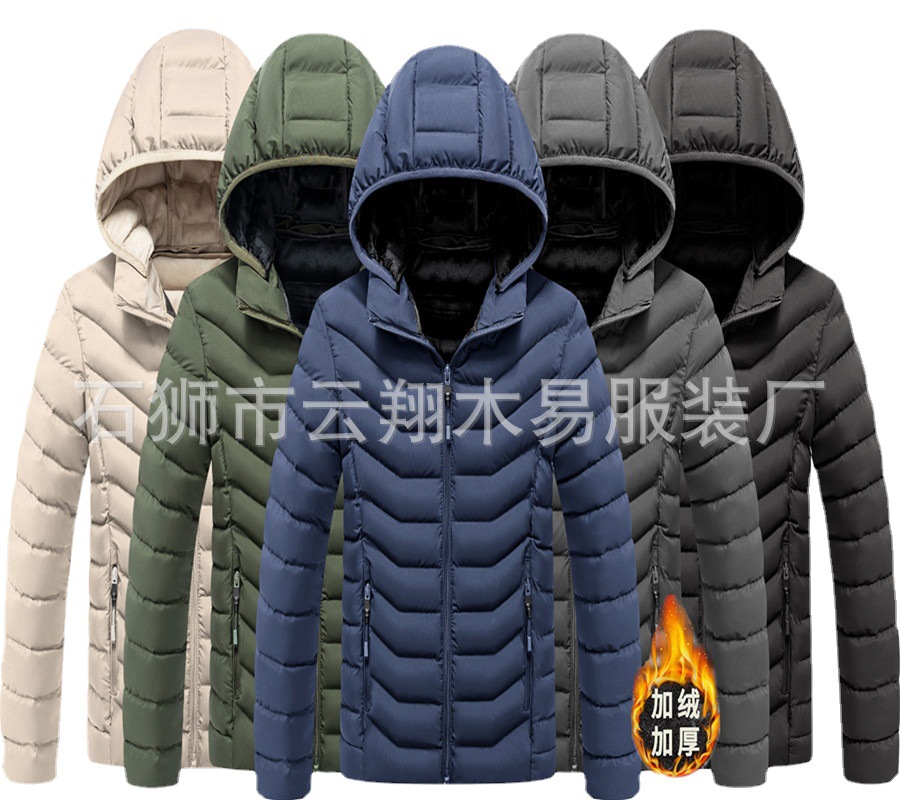 跨境冬季男士立领加绒加厚棉衣潮流中年装轻薄羽棉衣保暖外套批发