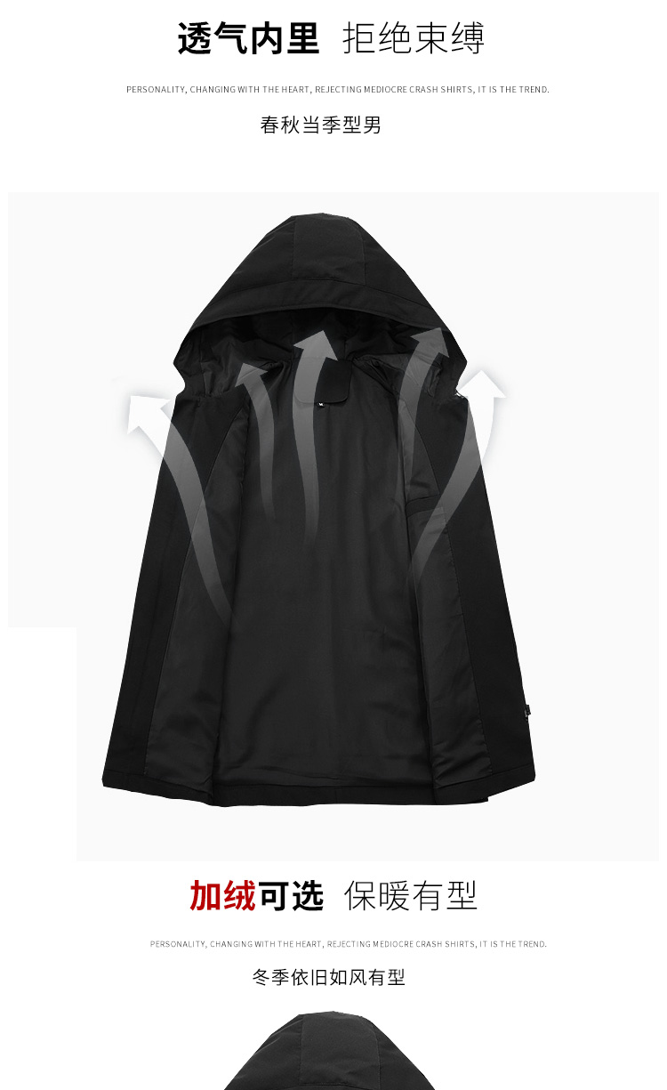 跨境夹克男士春秋薄款户外冲锋夹克青年连帽宽松大码休闲风衣外套