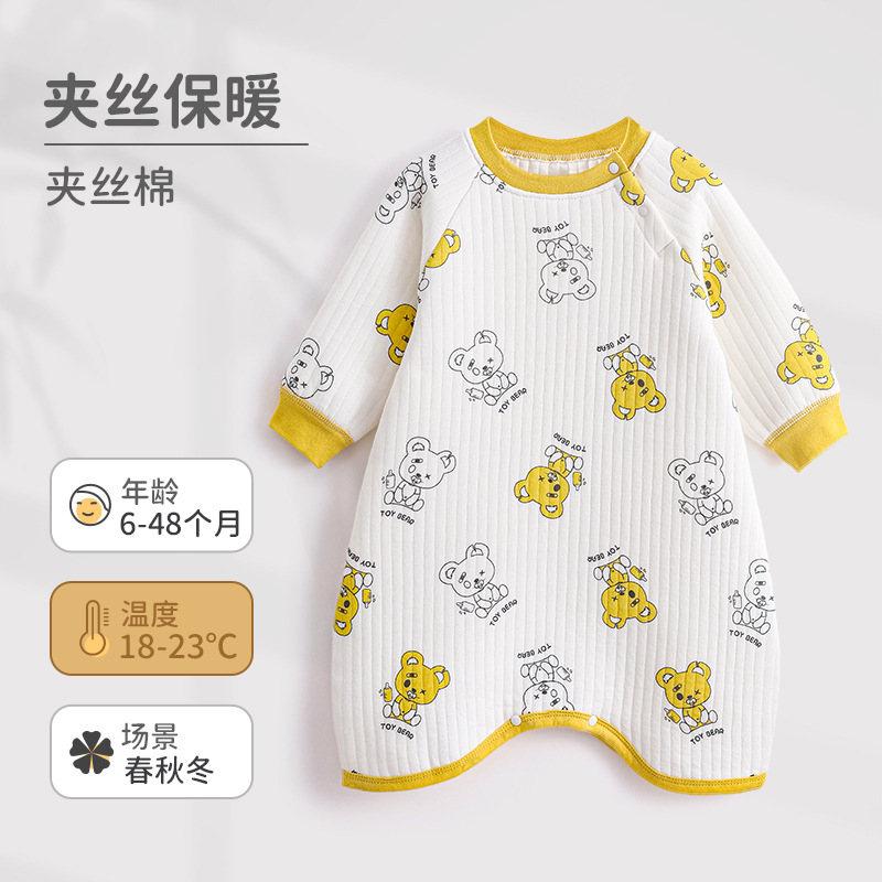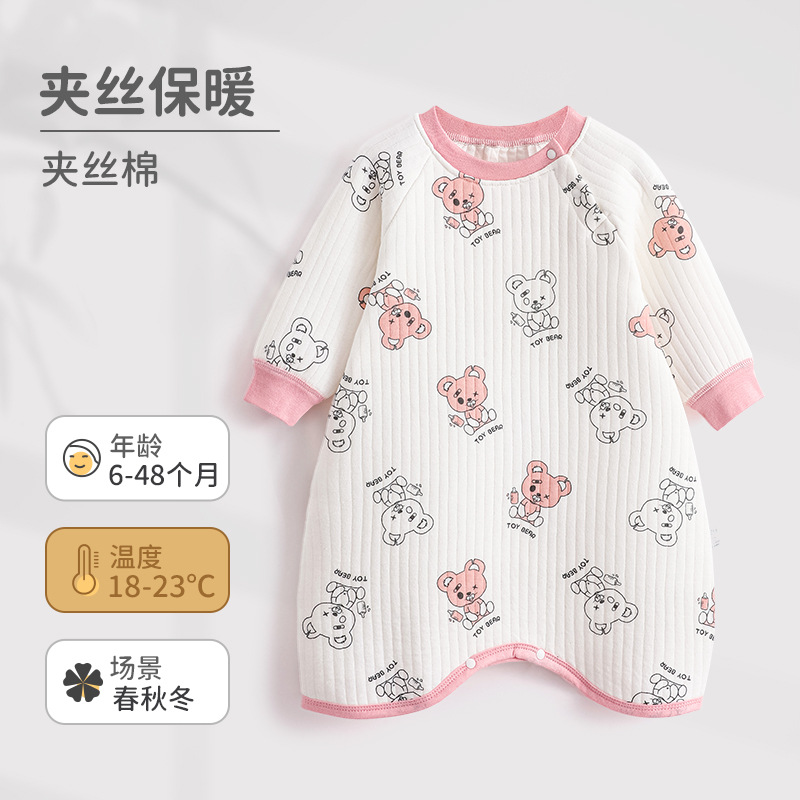 아기 잠옷 봄과 가을 3 층 실크 코튼 따뜻한 잠옷 두꺼운 잠옷 아기 감기 예방 원피스 옷 긴 소매스토어 가기