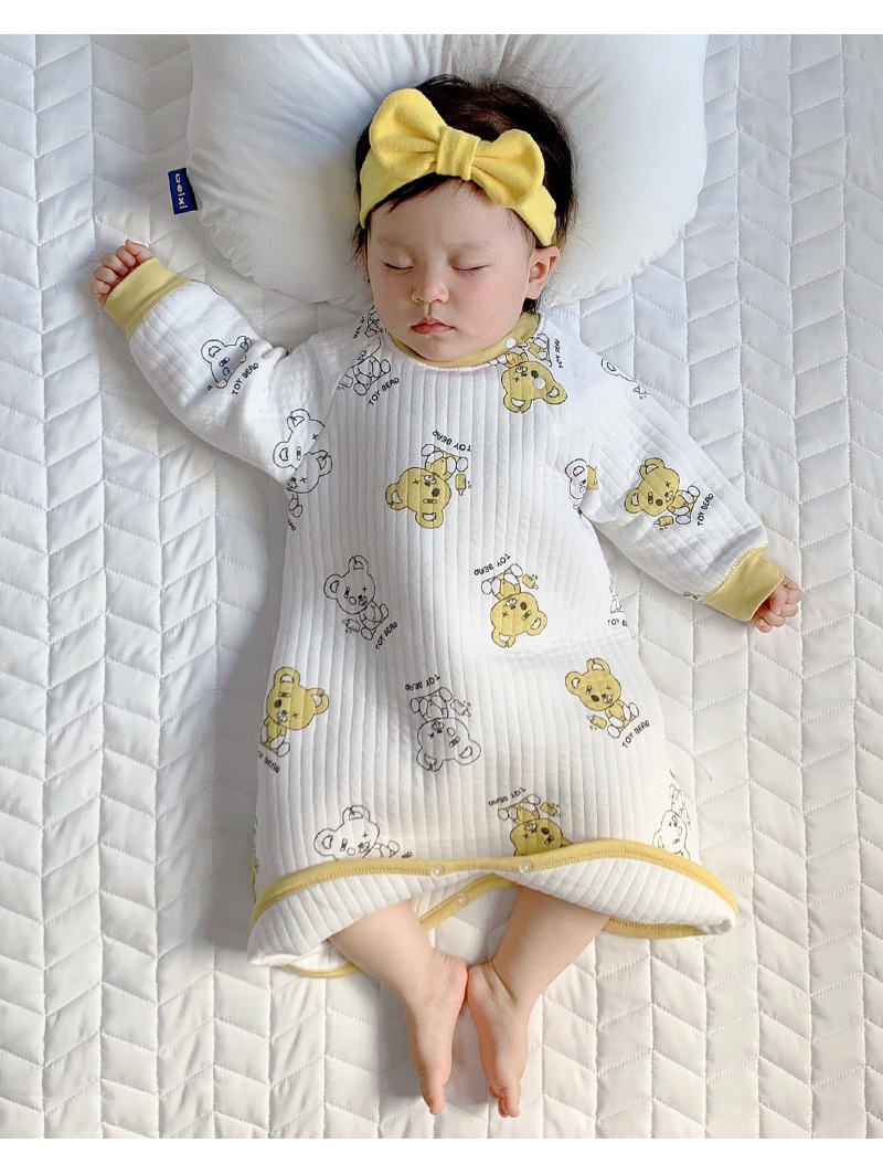 아기 잠옷 봄과 가을 3 층 실크 코튼 따뜻한 잠옷 두꺼운 잠옷 아기 감기 예방 원피스 옷 긴 소매