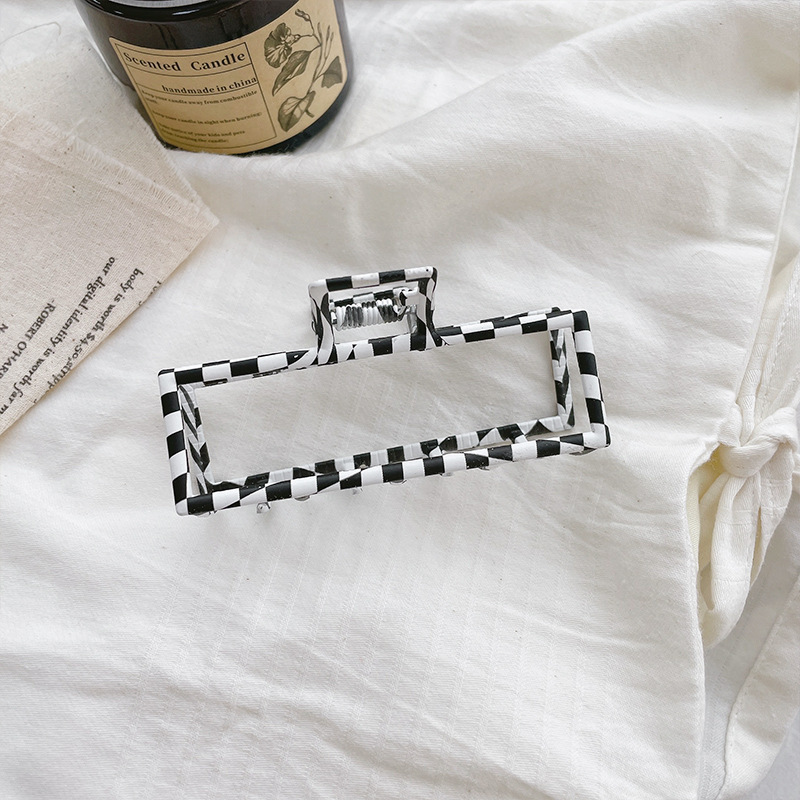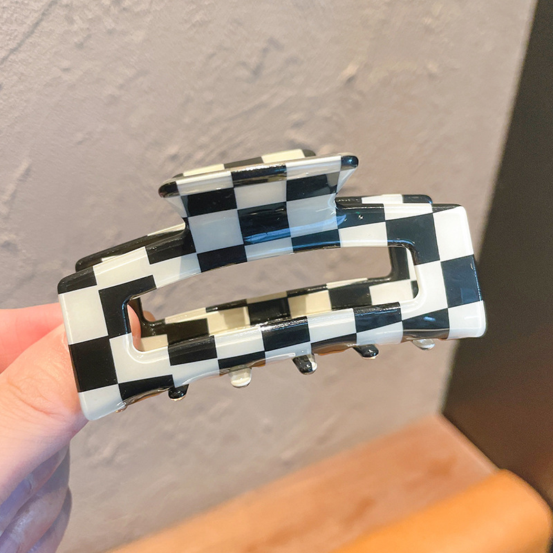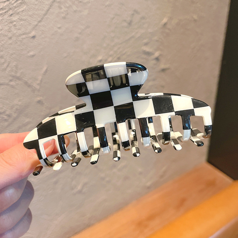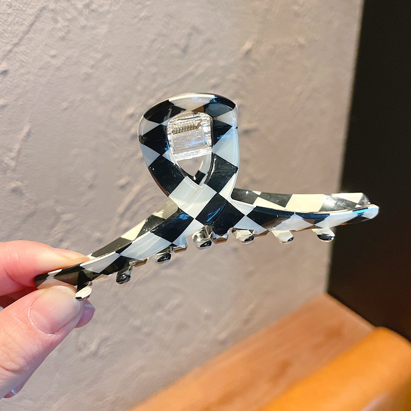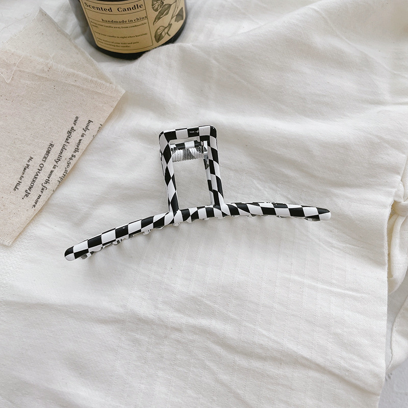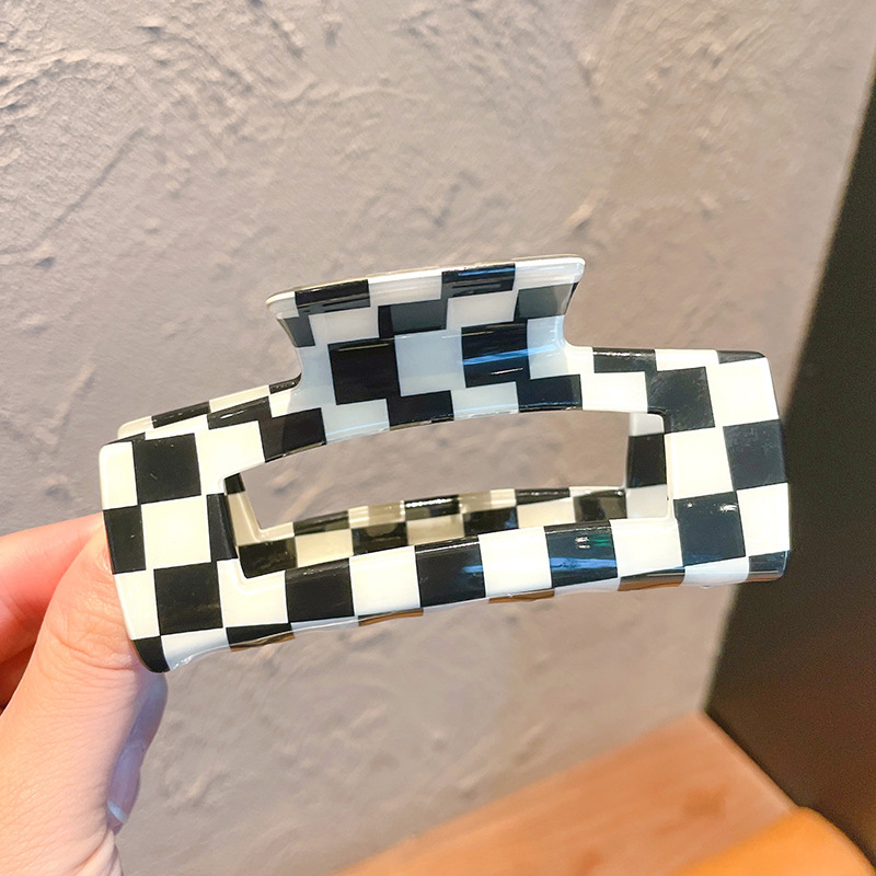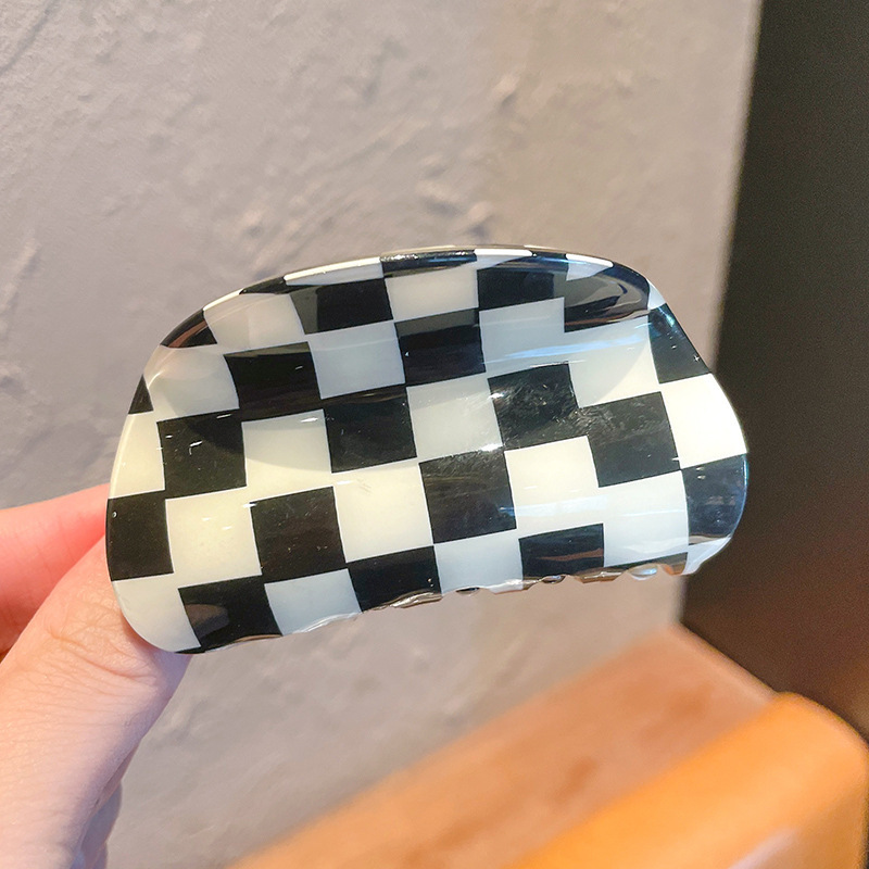 韩国ins超火 黑白棋盘格抓夹复古百搭盘发夹子发抓欧美风发饰头饰 黑白棋盘格大号抓夹后脑勺发夹女气质鲨鱼夹子头饰网红2021年新款
