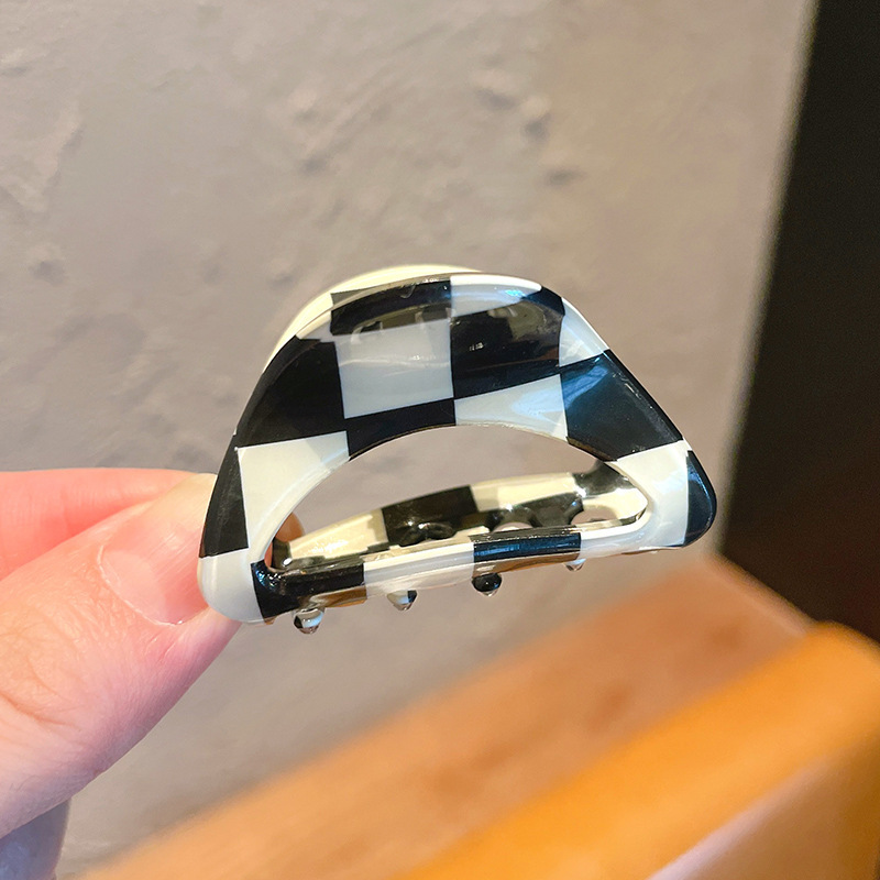흑인과 백인 바둑판 머리핀 머리 뒤 우아한 머리 잡아 클립 여성 우아한 간단한 상어 클립 모자 머리핀