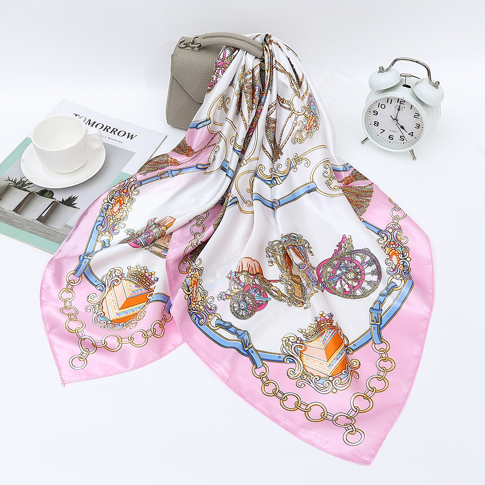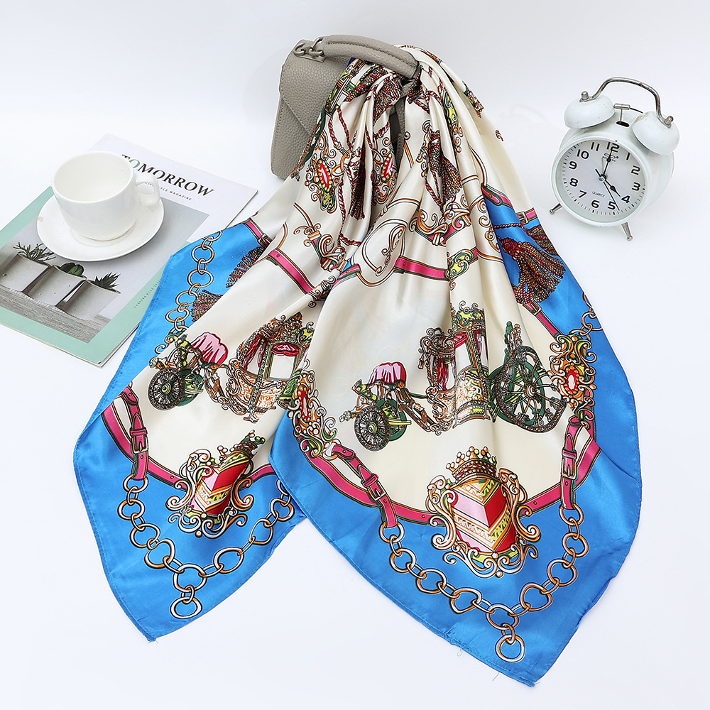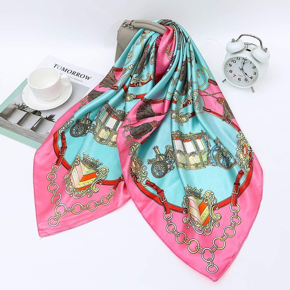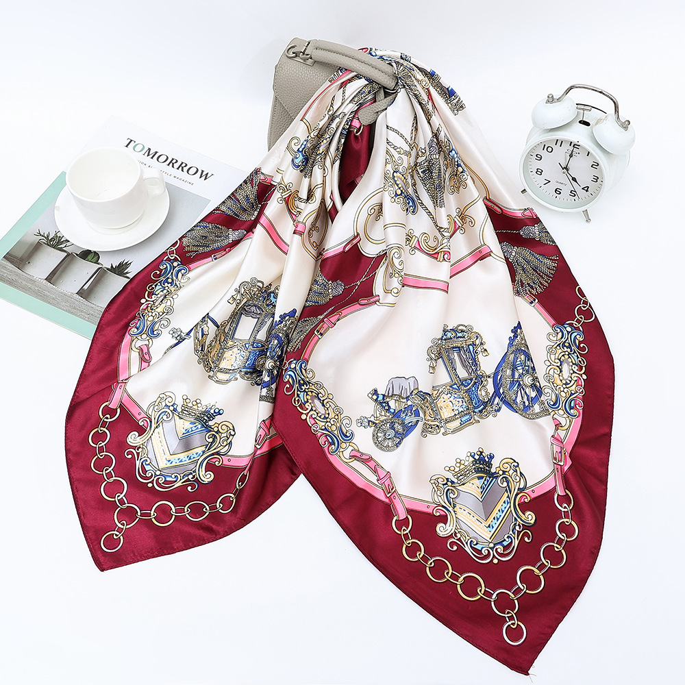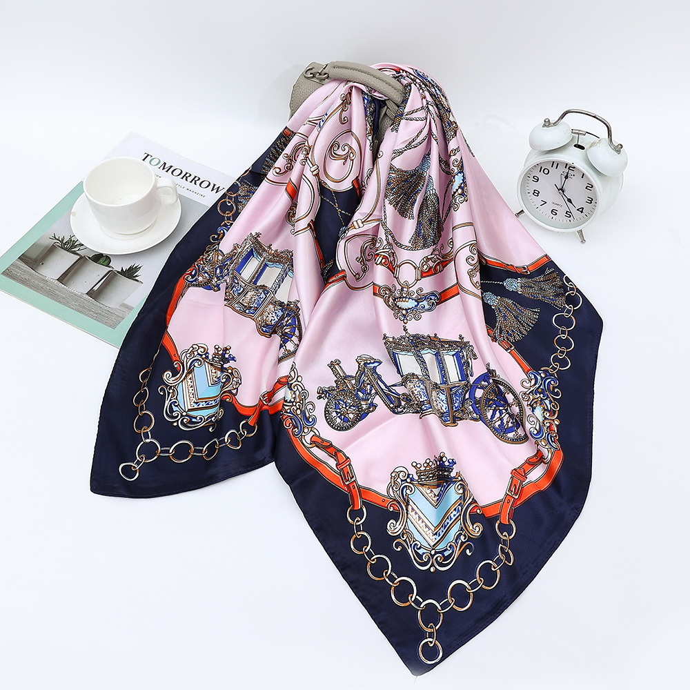 유럽과 미국 캐리지 체인 90cm 대형 사각 스카프 숙녀 새틴 인쇄 스카프 도매 손 선물 스카프 hijab