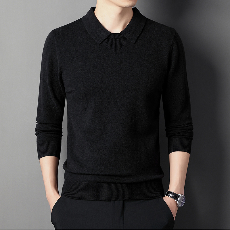 2021秋冬保暖男士羊毛衫新款时尚潮流个性翻领宽松大码加厚毛衣男