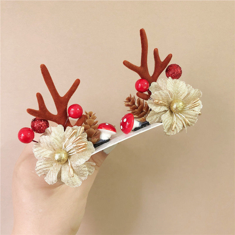 새로운 크리스마스 봉제 모자 새끼 사슴 뿔 머리핀 여성 간단한 모리 슈퍼 요정 머리핀 장식 헤어 액세서리 도매
