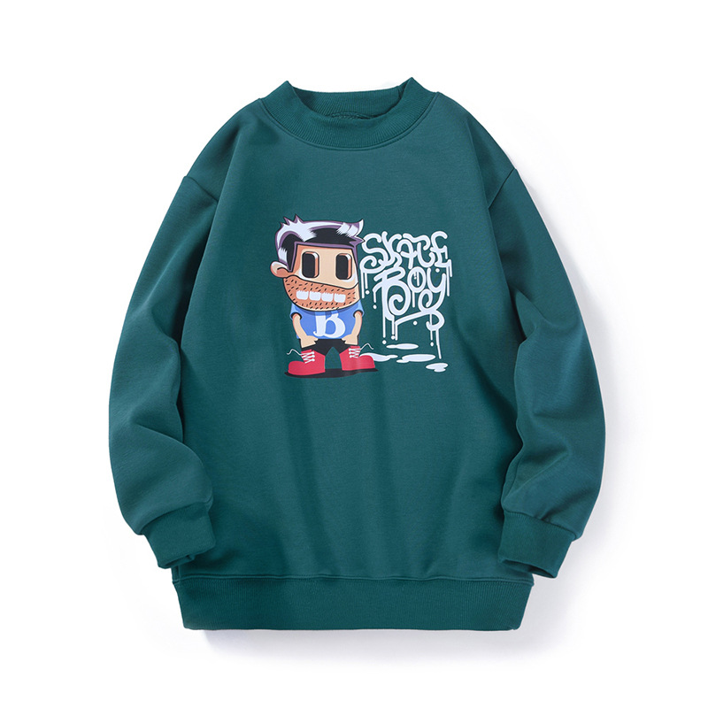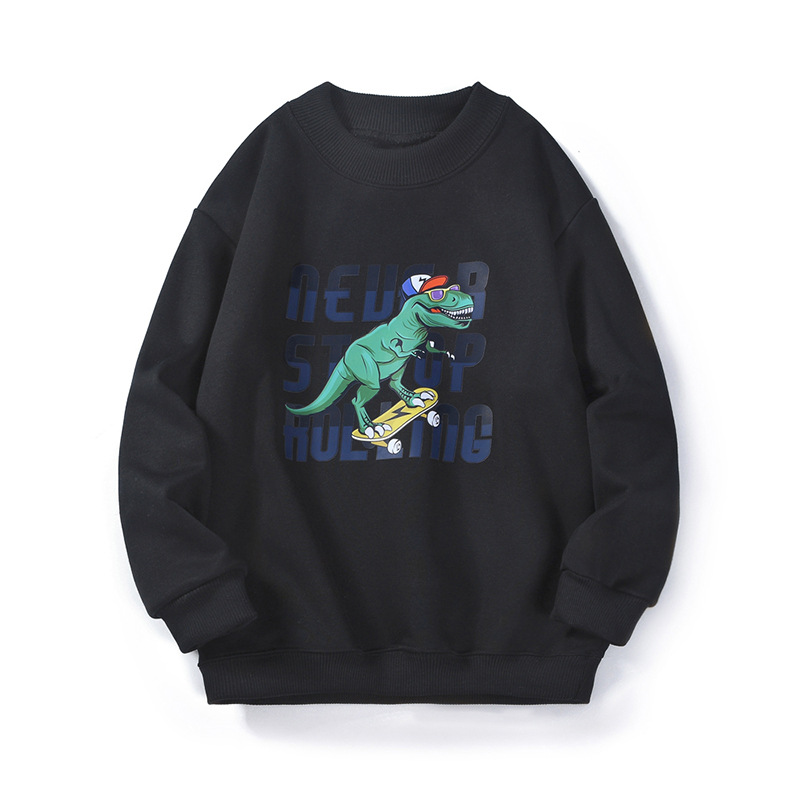 가을과 겨울 한국식 새로운 어린이 기모 스웨터 중대형 어린이 원피스 캐시미어 공룡 프린트 터틀넥 스웨터