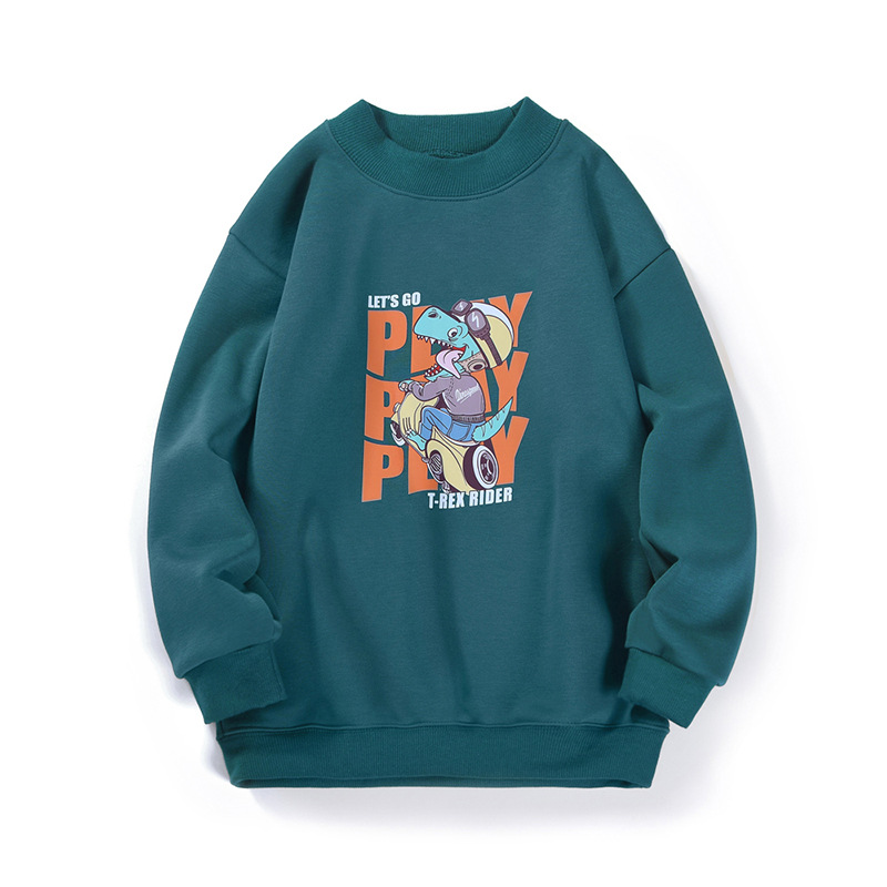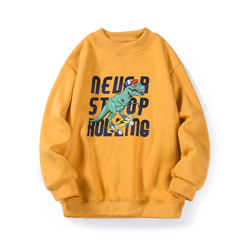 가을과 겨울 한국식 새로운 어린이 기모 스웨터 중대형 어린이 원피스 캐시미어 공룡 프린트 터틀넥 스웨터스토어 가기