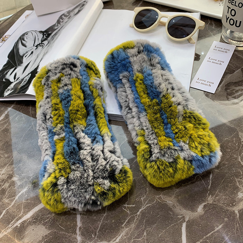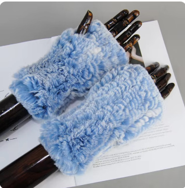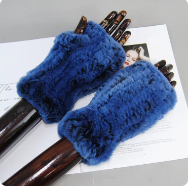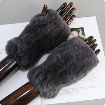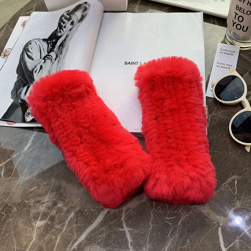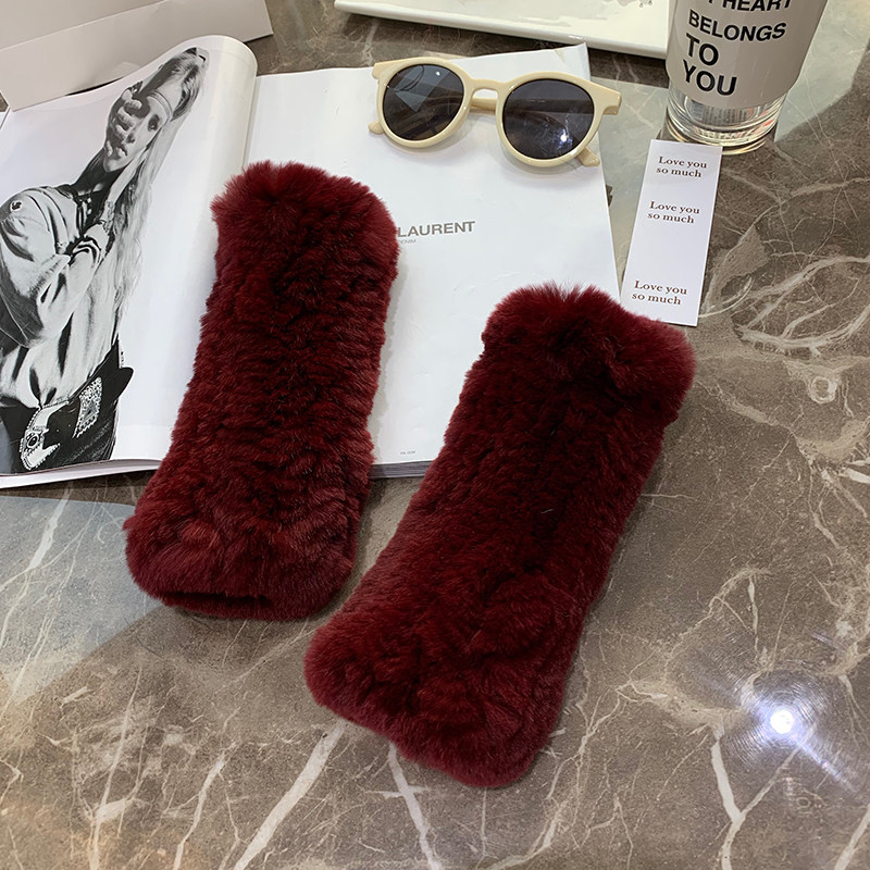 달콤한 여성스러운 가을 겨울 따뜻한 두꺼운 렉스 토끼털 장갑 여학생용 글쓰기 및 뜨개질 장갑 반손가락 장갑