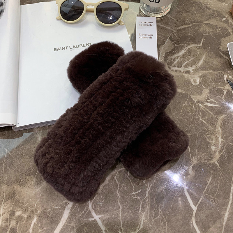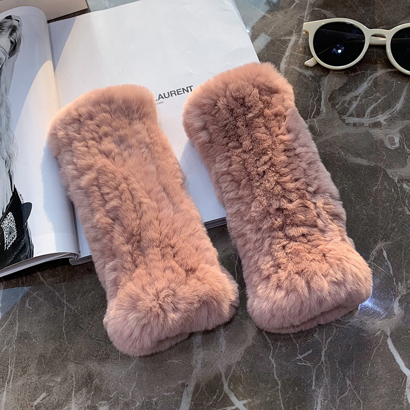 달콤한 여성스러운 가을 겨울 따뜻한 두꺼운 렉스 토끼털 장갑 여학생용 글쓰기 및 뜨개질 장갑 반손가락 장갑스토어 가기