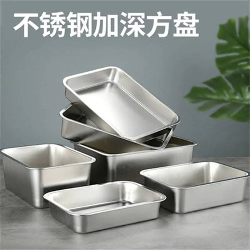 스테인리스 트레이 사각형 깊은 직사각형 밥 트레이 뷔페 접시 평평한 접시 찜 트레이 해외 도매스토어 가기