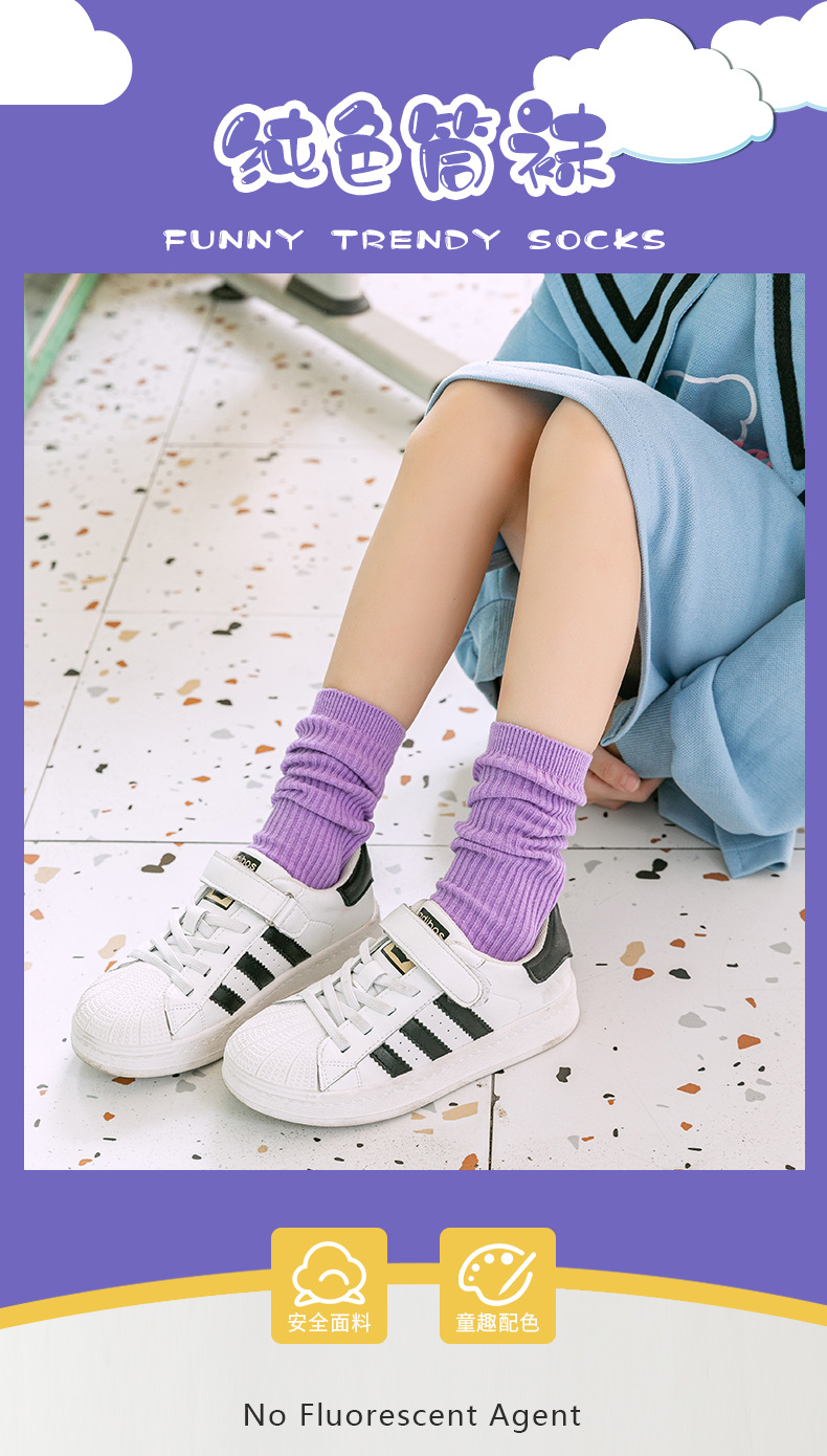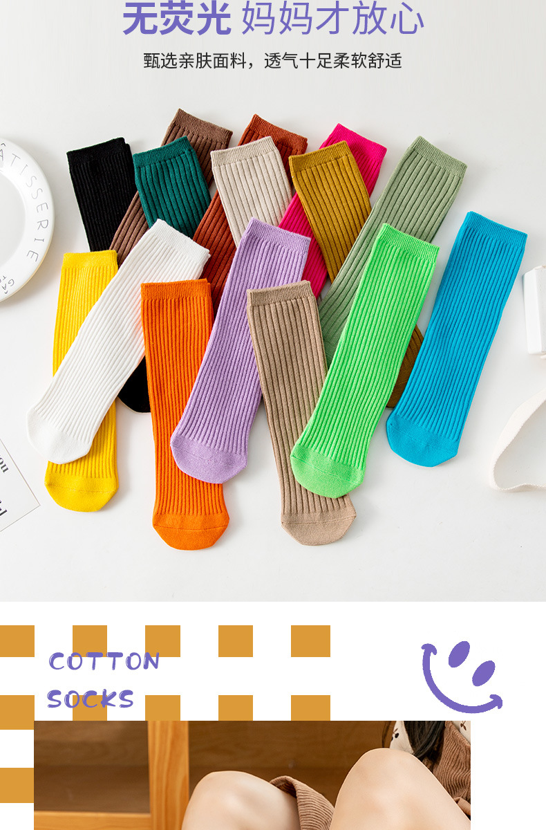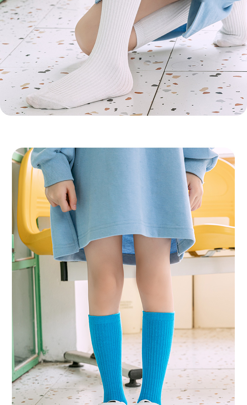 어린이용 A급 한국 스타일 단색 양말, 여아용 통기성 양말, 냄새 방지 롱 양말스토어 가기