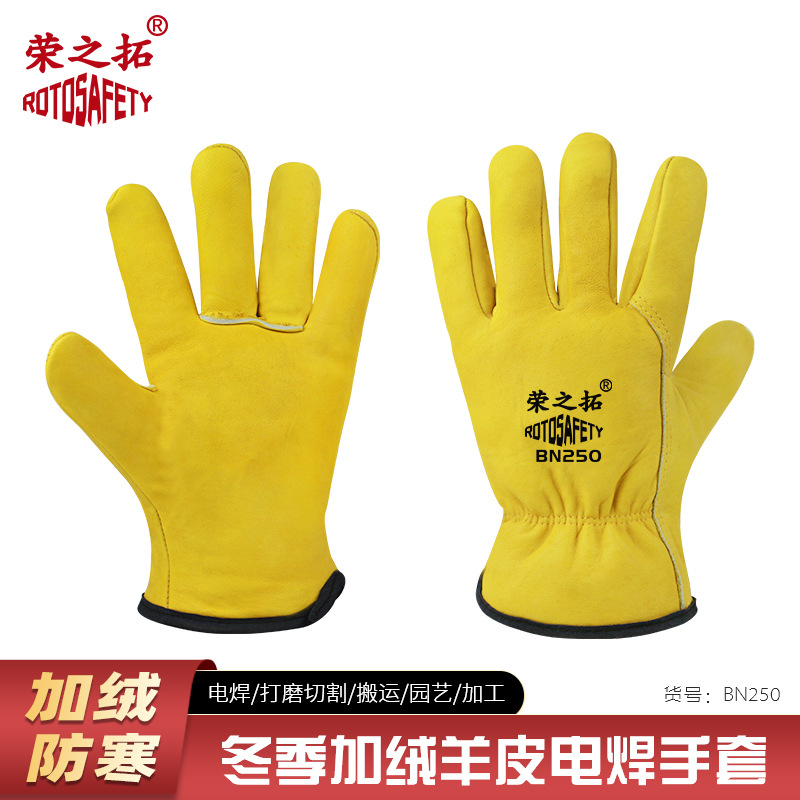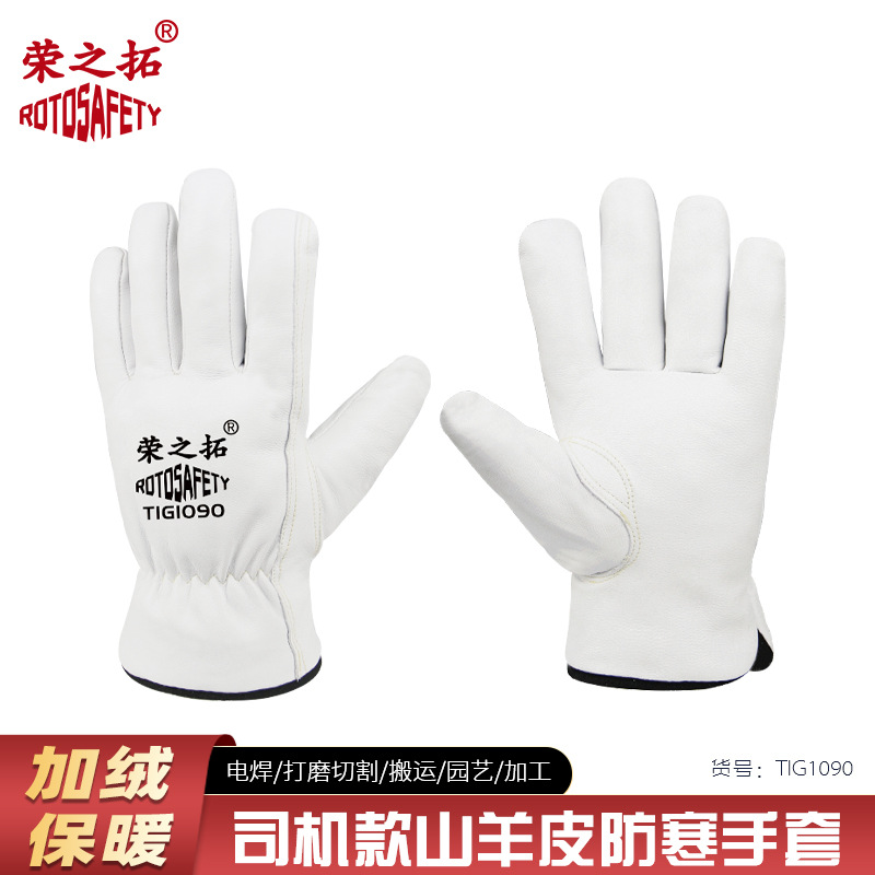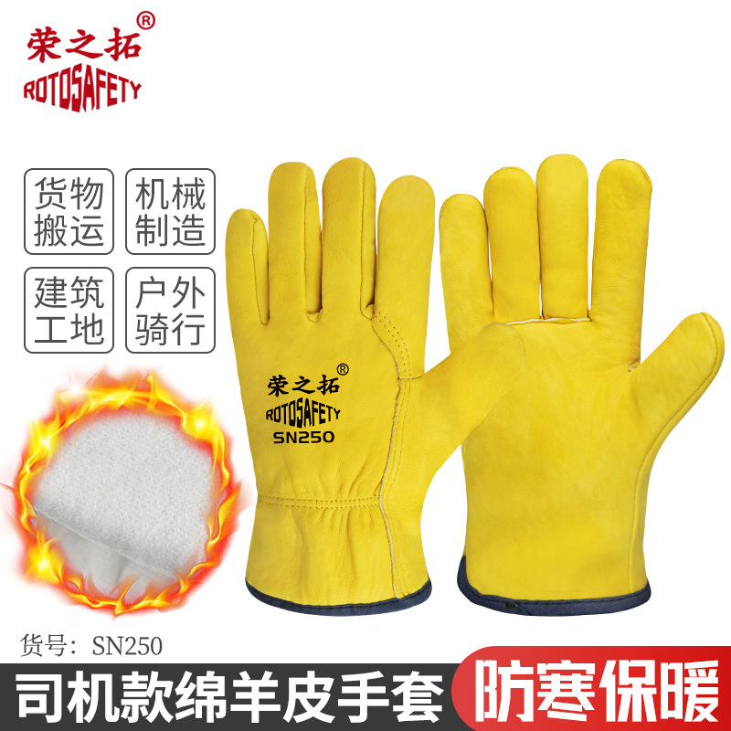 Rongzhi Tuo 순수한 양가죽 취급 장갑 따뜻한 두꺼운 내마모성 승마 짧은 보호 유지 보수 드라이버 단열 노동 보호