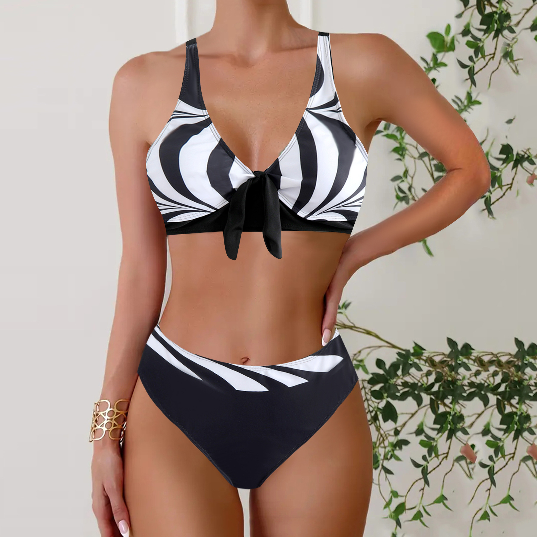 2022 새로운 흑백 인쇄 수영복 다채로운 패턴 수영복 가슴 패드와 스틸 브래킷 없음 여성용 수영복스토어 가기