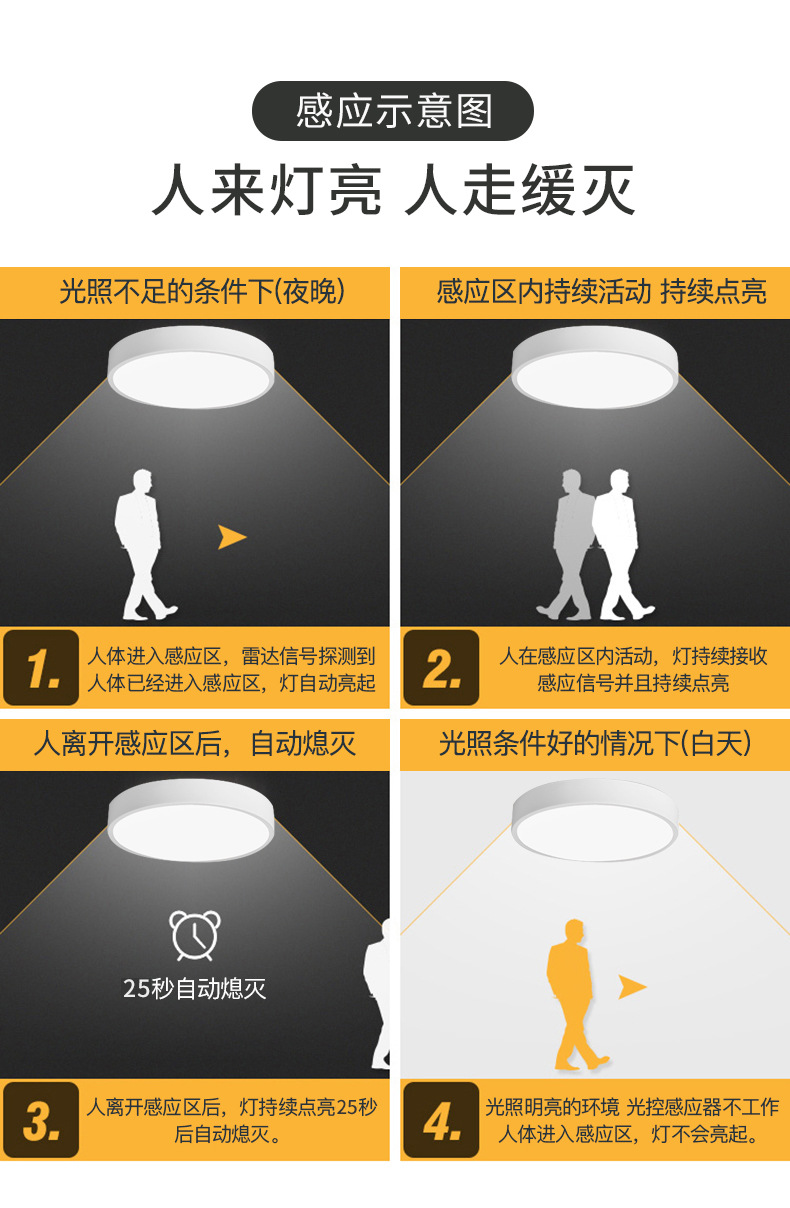 LED 원형 통로 천장 조명 룸 라이트 레이더 스마트 센서 천장 조명 계단 발코니 입구 조명