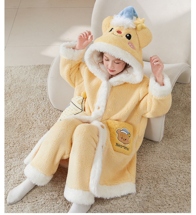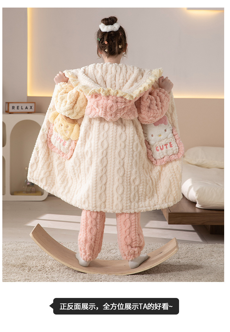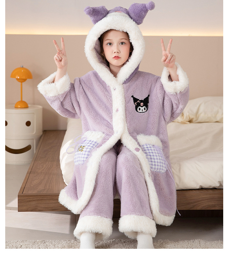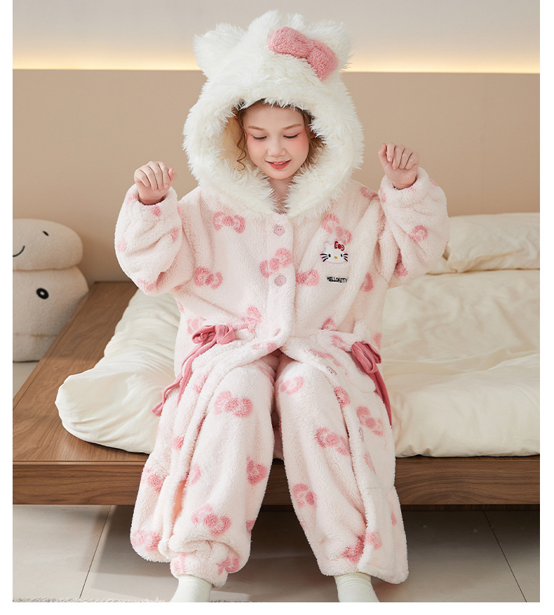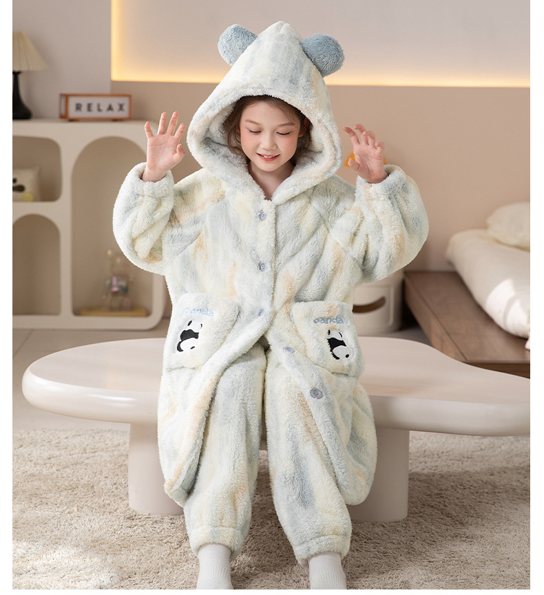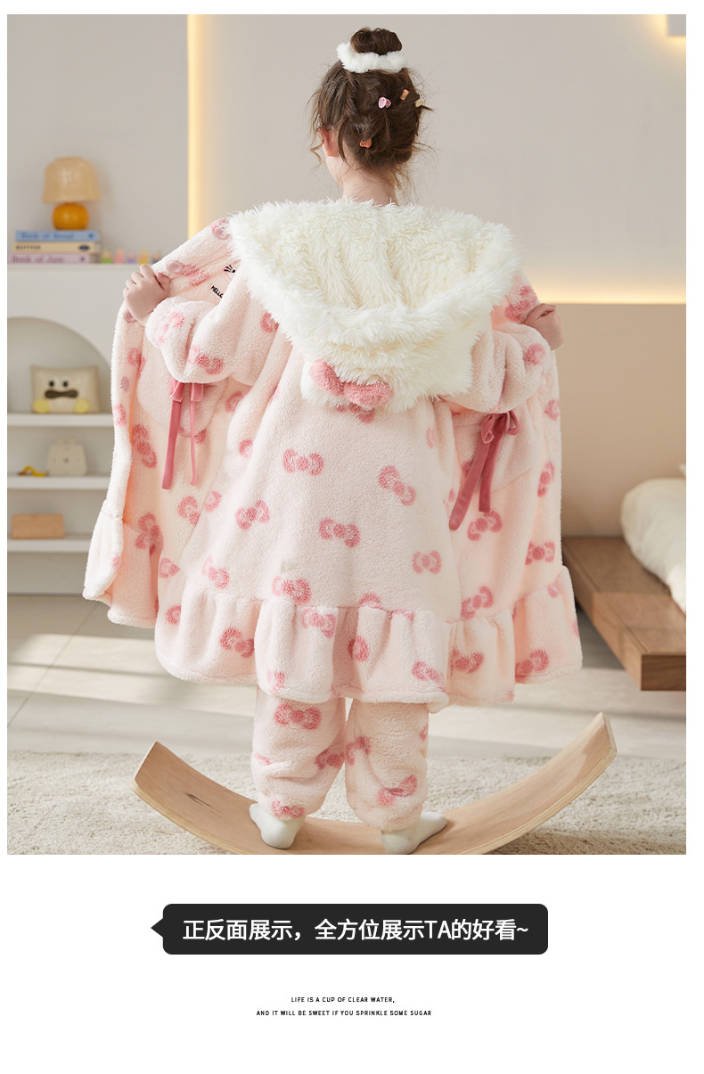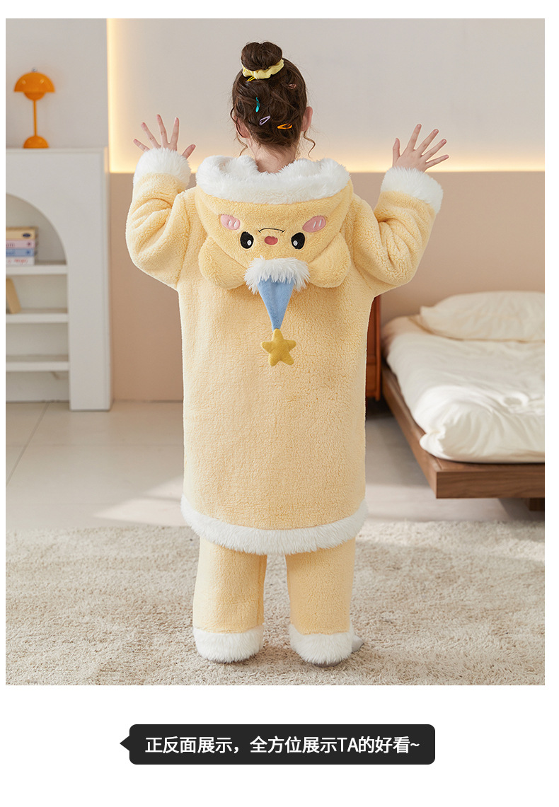 어린이 잠옷 여아 잠옷 가을과 겨울 산호 양털 플란넬 두꺼운 세트 여아 큰 어린이 목욕 가운 가정 옷스토어 가기