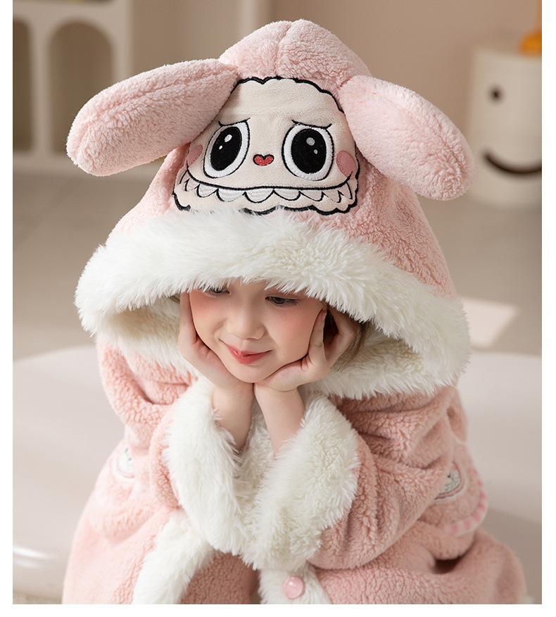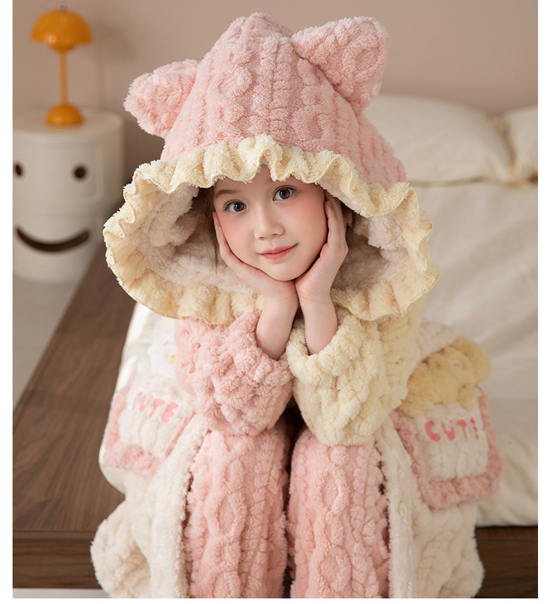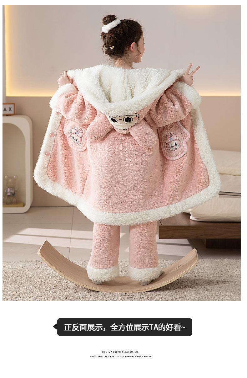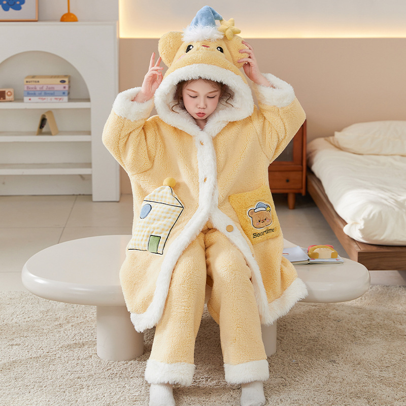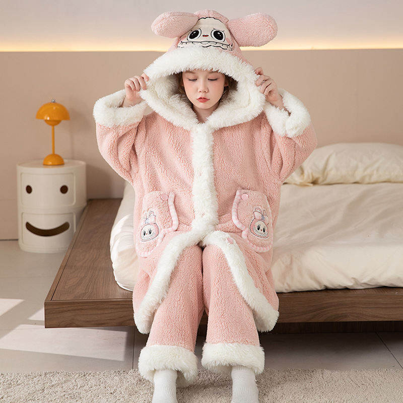 어린이 잠옷 여아 잠옷 가을과 겨울 산호 양털 플란넬 두꺼운 세트 여아 큰 어린이 목욕 가운 가정 옷