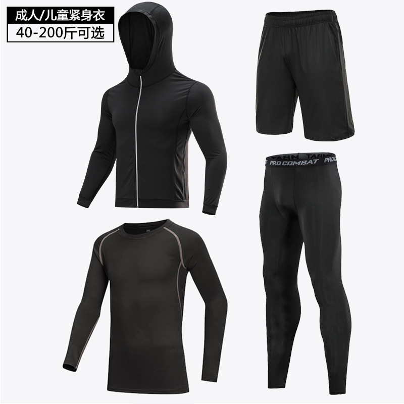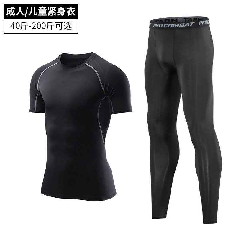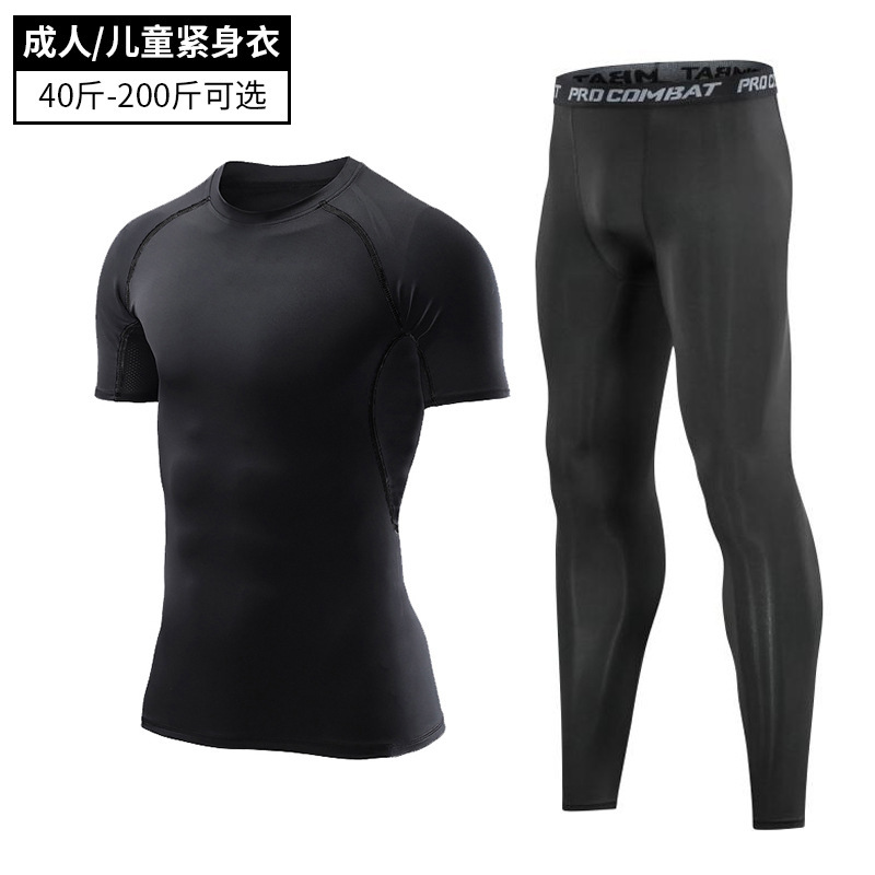어린이 피트니스 의류 남자의 세트 새로운 탄성 스포츠 속건 스타킹 실행 농구 기지 훈련 의류 도매스토어 가기