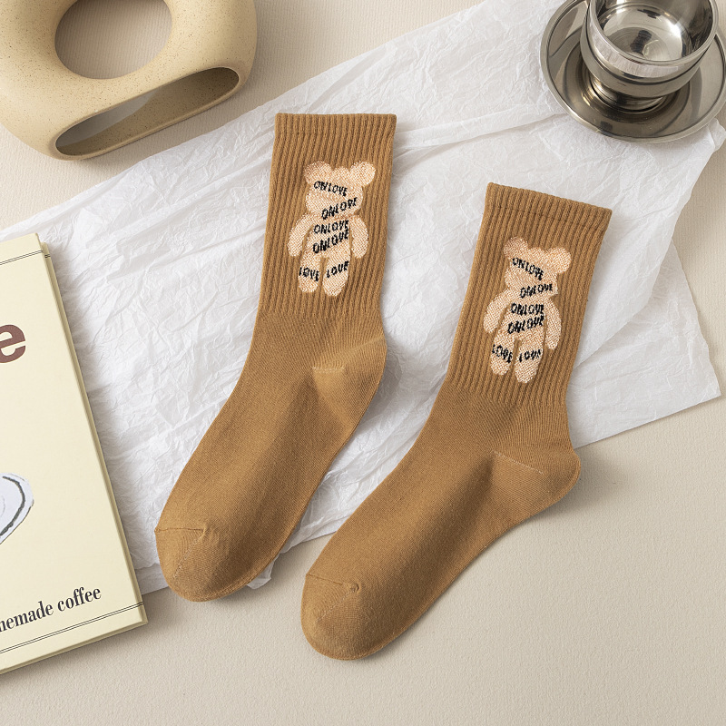 양말 여성용 가을과 겨울 양말 면 양말 긴 중간 길이 유행 한국 스타일 만화 일본 스타일 온라인 연예인 라이브 공급 스타킹 여성용스토어 가기