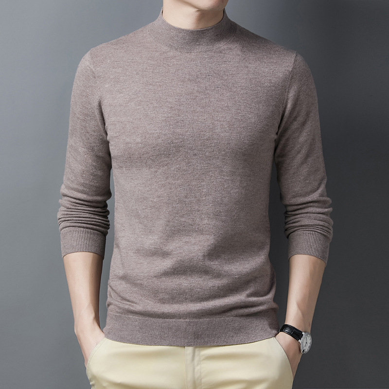 掌柜推荐半高领绿色现货都市套头罗纹底摆男式羊毛衫休闲