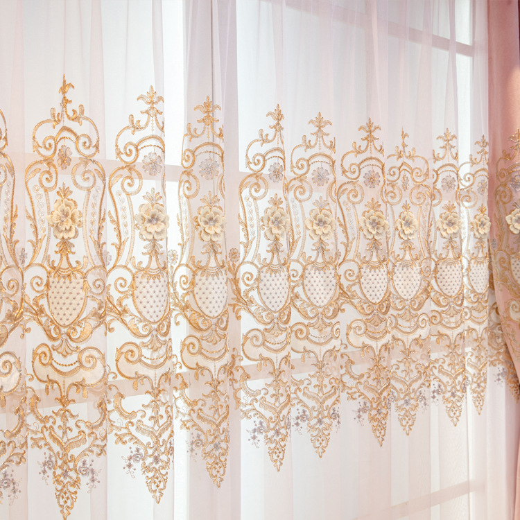 새로운 웨딩 룸 고급 유럽식 핑크 커튼 고급 대기 거실 침실 그늘 천 제인 유럽 바닥에서 천장까지 창