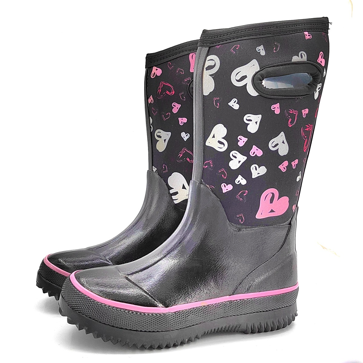 어린이 키 큰 소 다크 브라운 레인 부츠 블루 스타 핑크 귀여운 편안한 따뜻한 레인 부츠 사랑