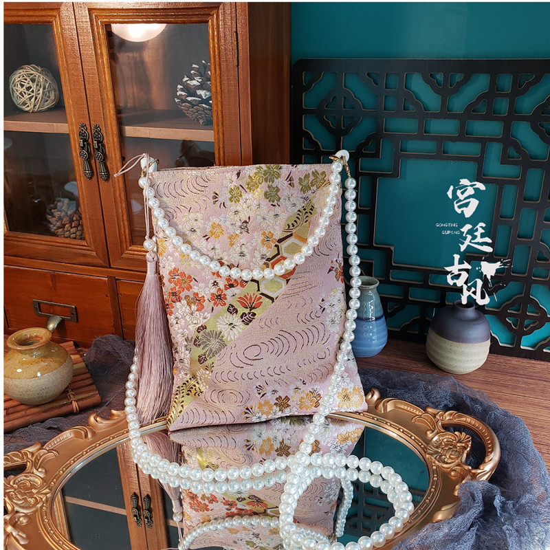새로운 중국 스타일 술 가방 세로 사각 궁전 스타일 진주 크로스 바디 백 치파오가있는 고대 스타일 한푸 백스토어 가기