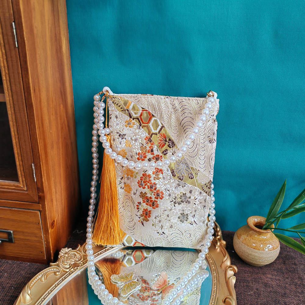 새로운 중국 스타일 술 가방 세로 사각 궁전 스타일 진주 크로스 바디 백 치파오가있는 고대 스타일 한푸 백