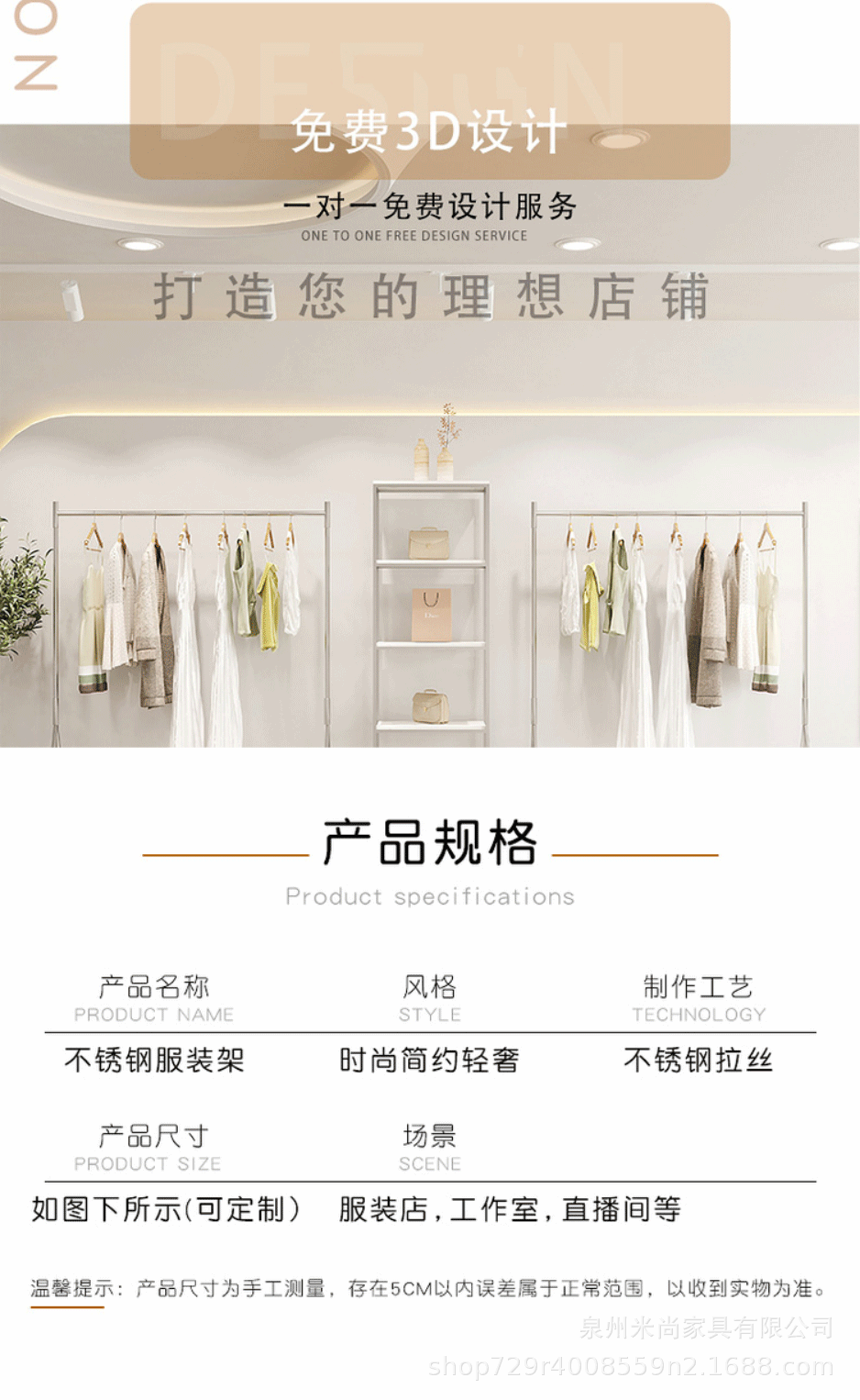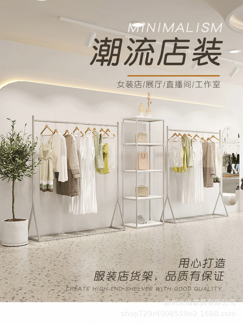 스테인리스 스틸 브러시드 의류 선반, 바닥형 측면 걸이형 행거, 남녀 아동복 걸이, 의류 보관, 의류 센터 아일랜드 랙