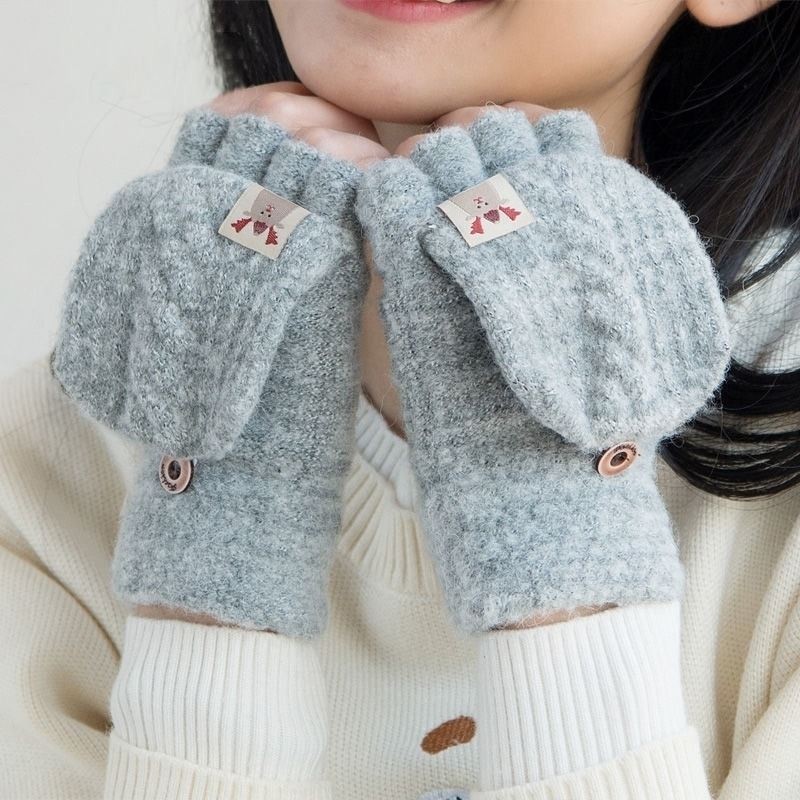 반 손가락 장갑 여성 겨울 학생 쓰기 사무실 따뜻한 장갑 니트 울 오픈 손가락 이중 사용 플립 장갑