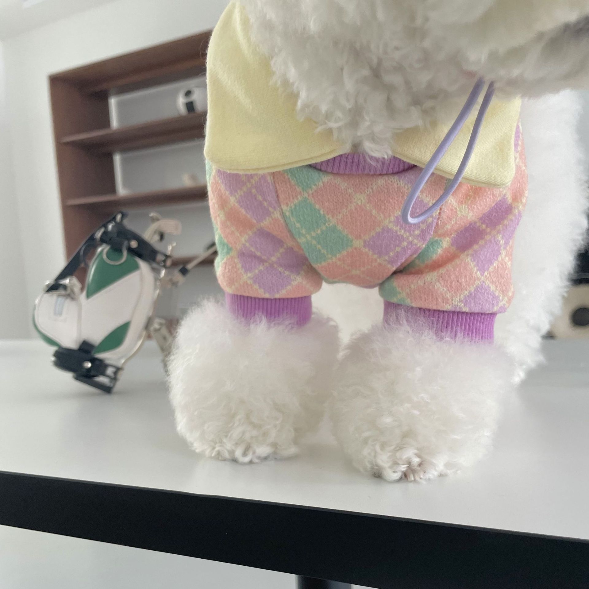 INS风韩国秋冬款绒感针织撞色菱形高尔夫T恤来啦!