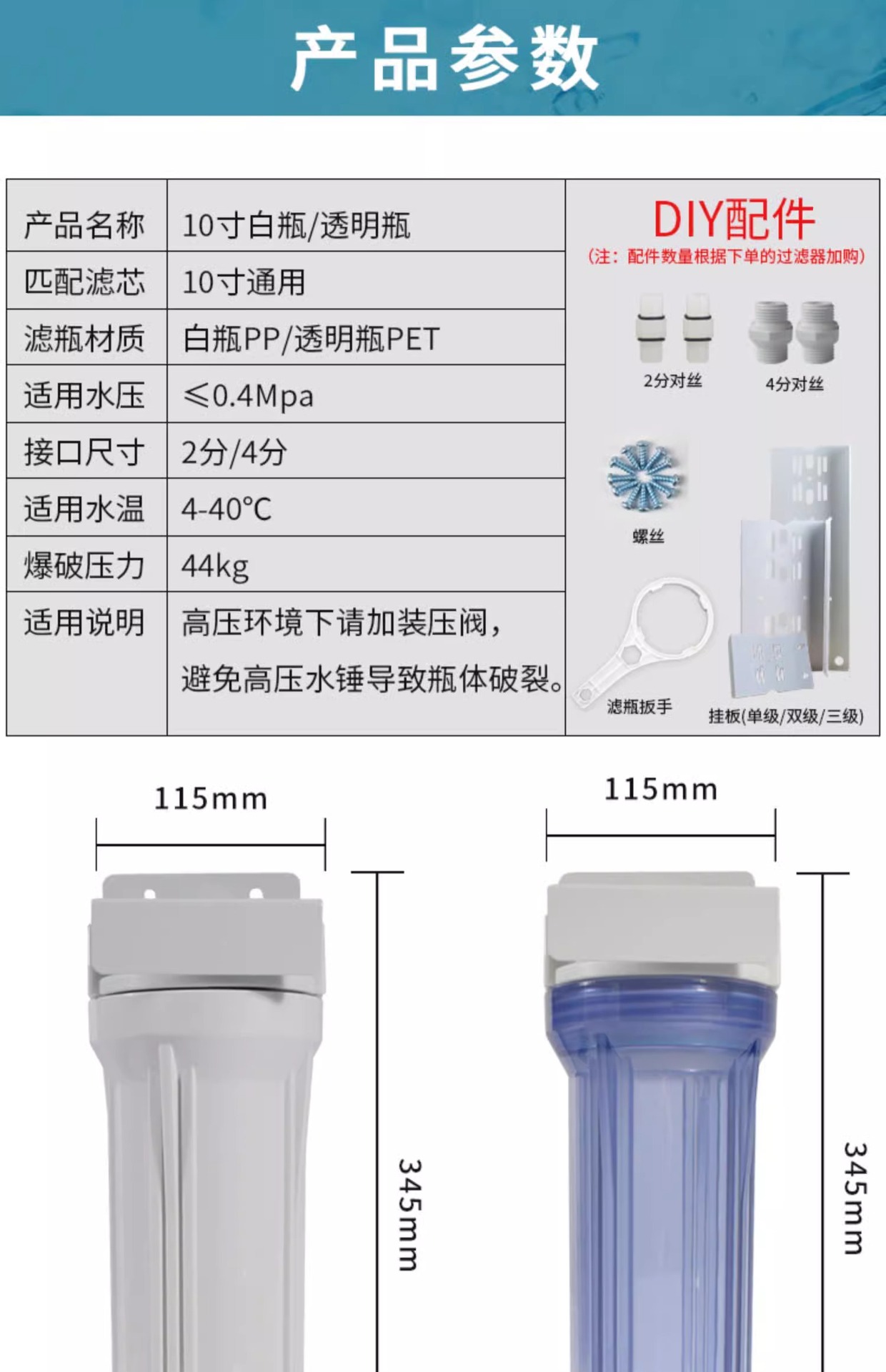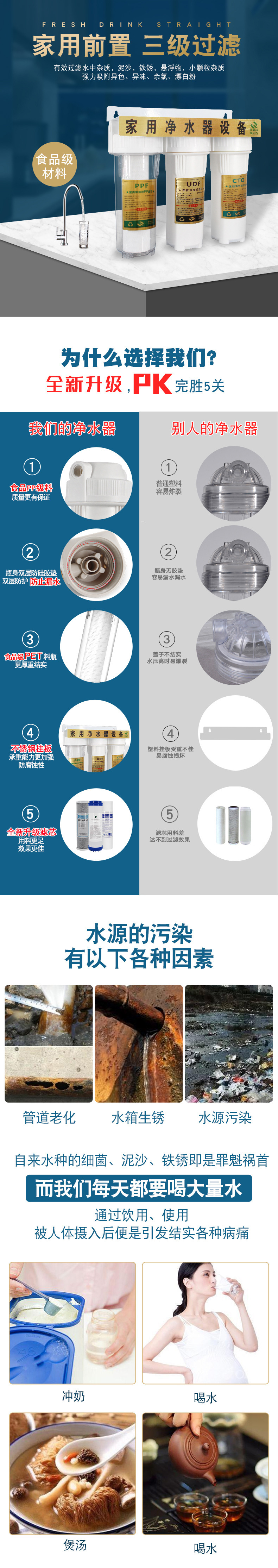 주방 정수기 가정용 10 인치 3 단 사전 필터 탭 정수기 정수기 필터 병 필터 요소스토어 가기