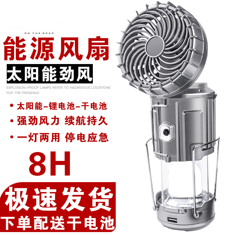 • 업그레이드된 태양 리튬 선풍기 조명 실버