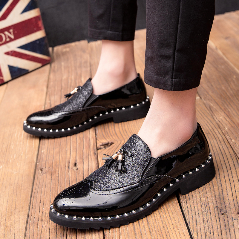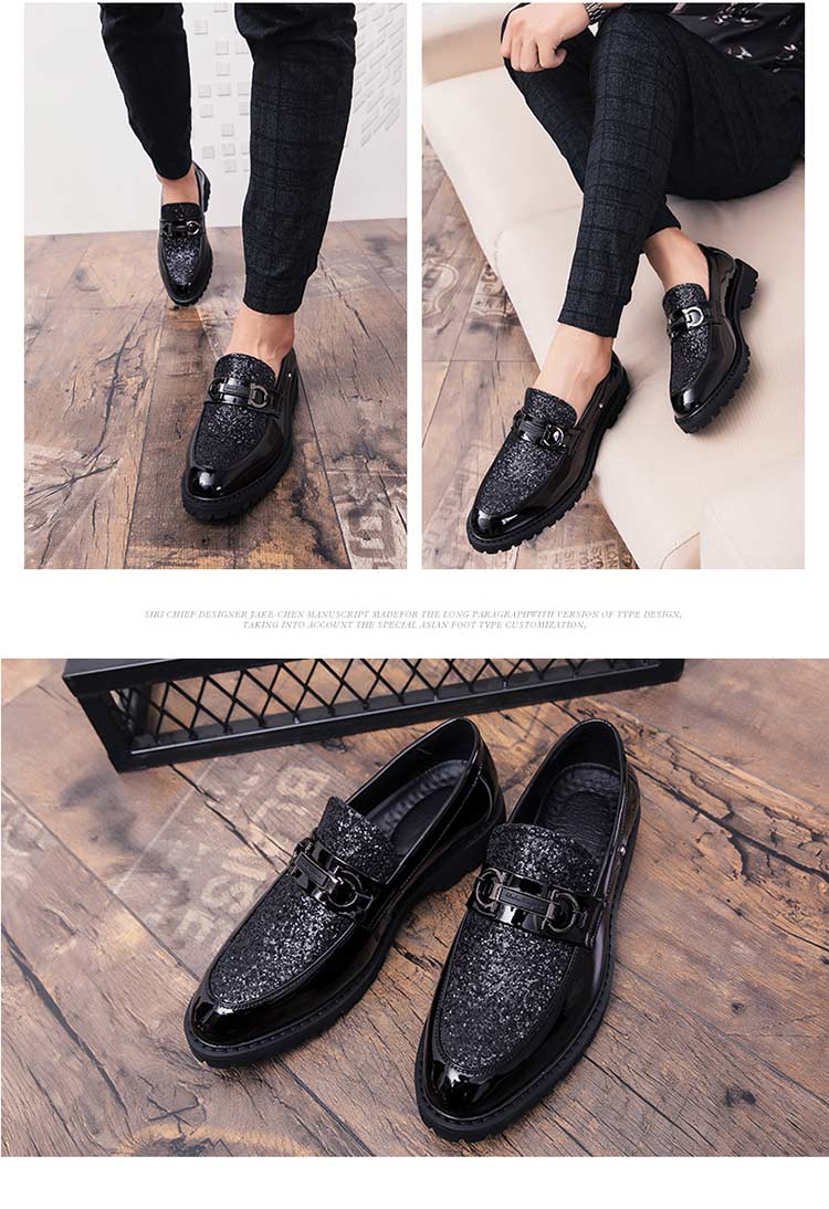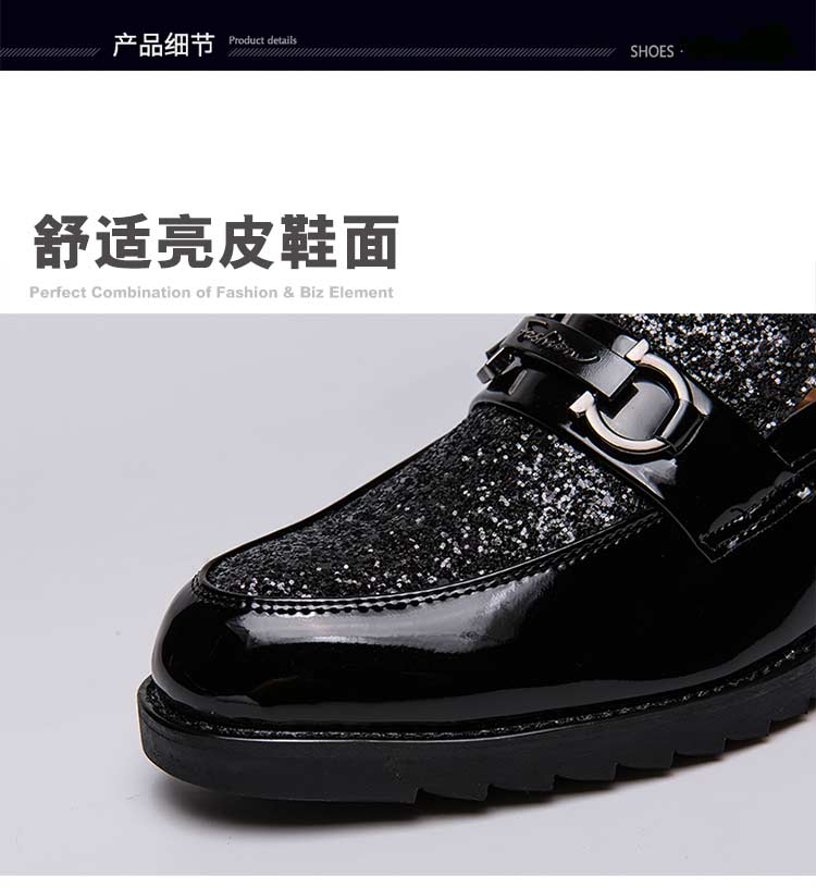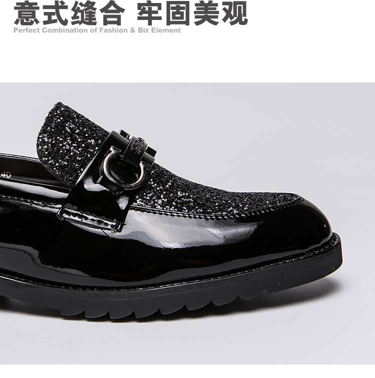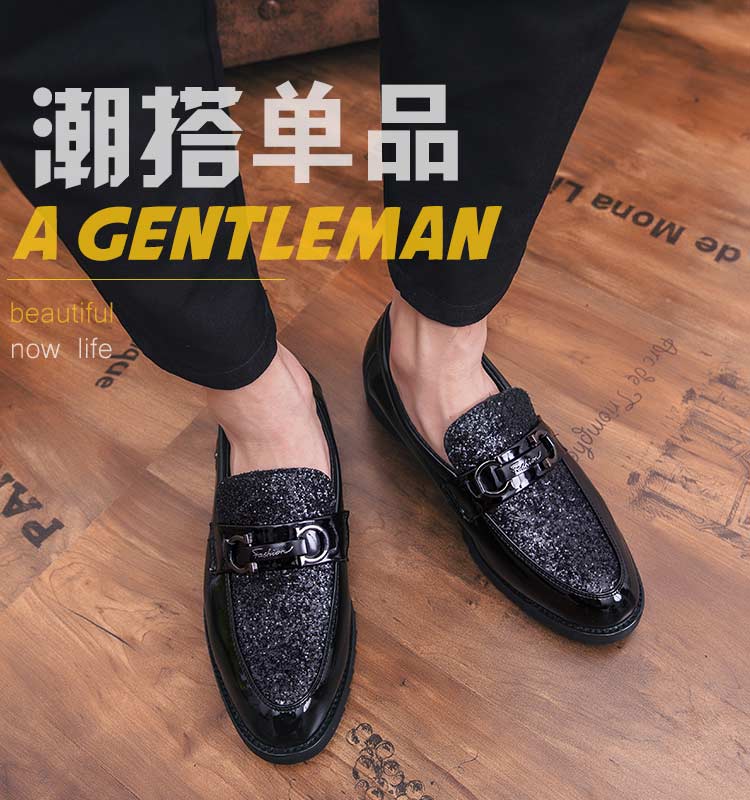 韩版潮流发型师尖头小皮鞋夜场亮面潮鞋英伦男士一脚蹬休闲男鞋子