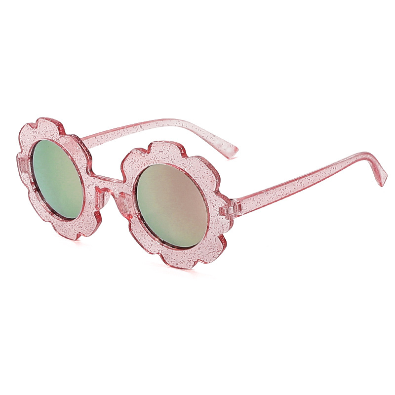 새로운 어린이 선글라스 귀여운 해바라기 라운드 프레임 아마존 어린이 안경 선 스크린 어린이 선글라스 도매
