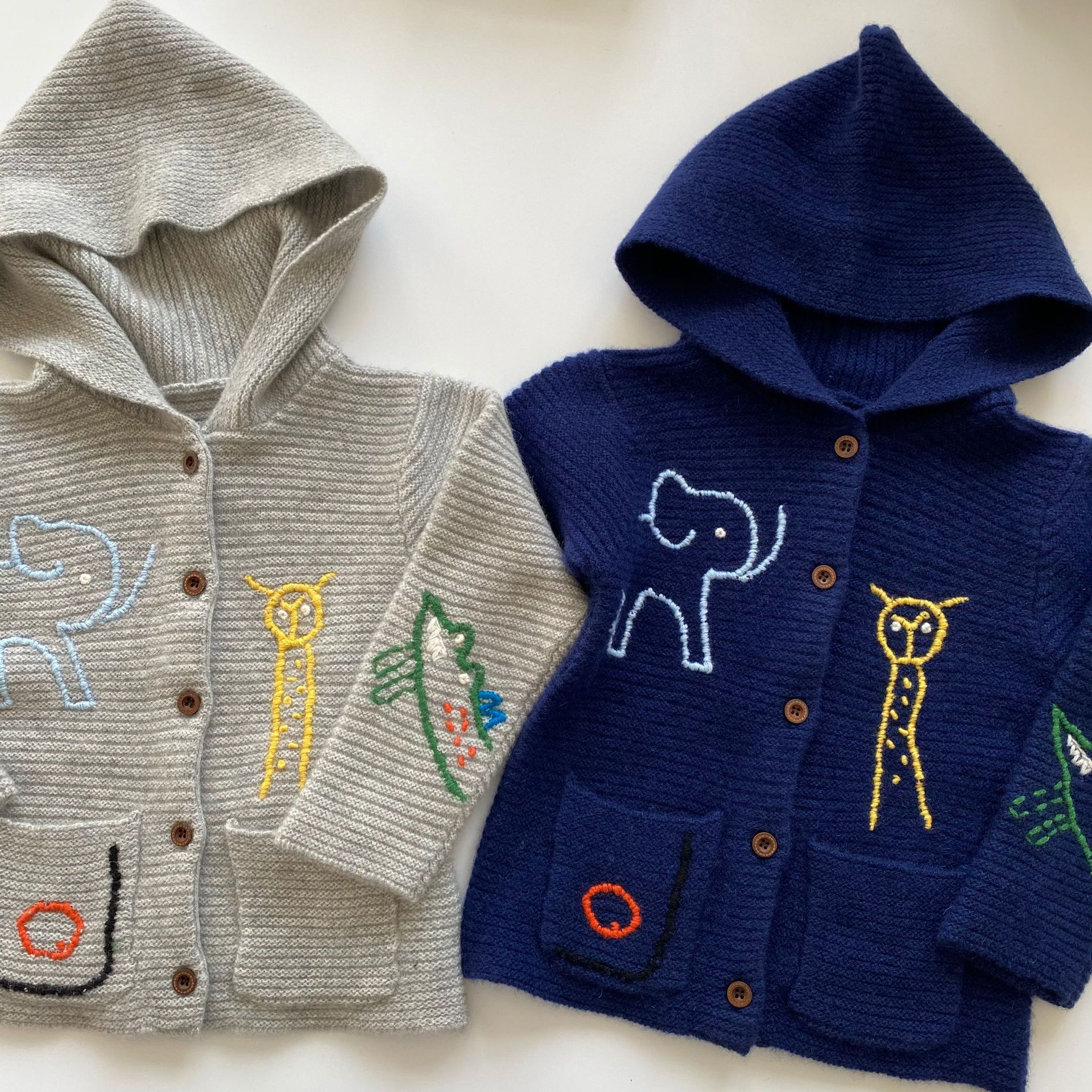 소년과 소녀를위한 Pengbo 캐시미어 어린이 스웨터 캐시미어 코트 어쨌든 두꺼운 바늘 손 자수 동물 까마귀