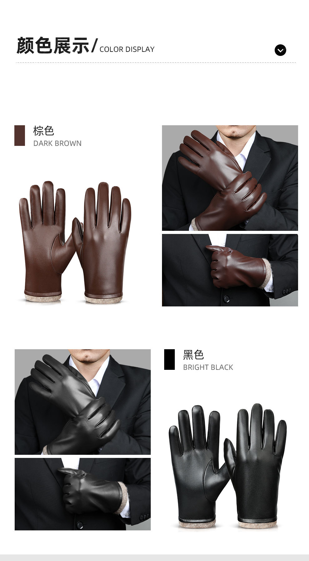 겨울 터치 스크린 따뜻한 장갑 pu 가죽 방풍 및 방수 오토바이 타기 비즈니스 남성용 방한 장갑 선물 상자스토어 가기